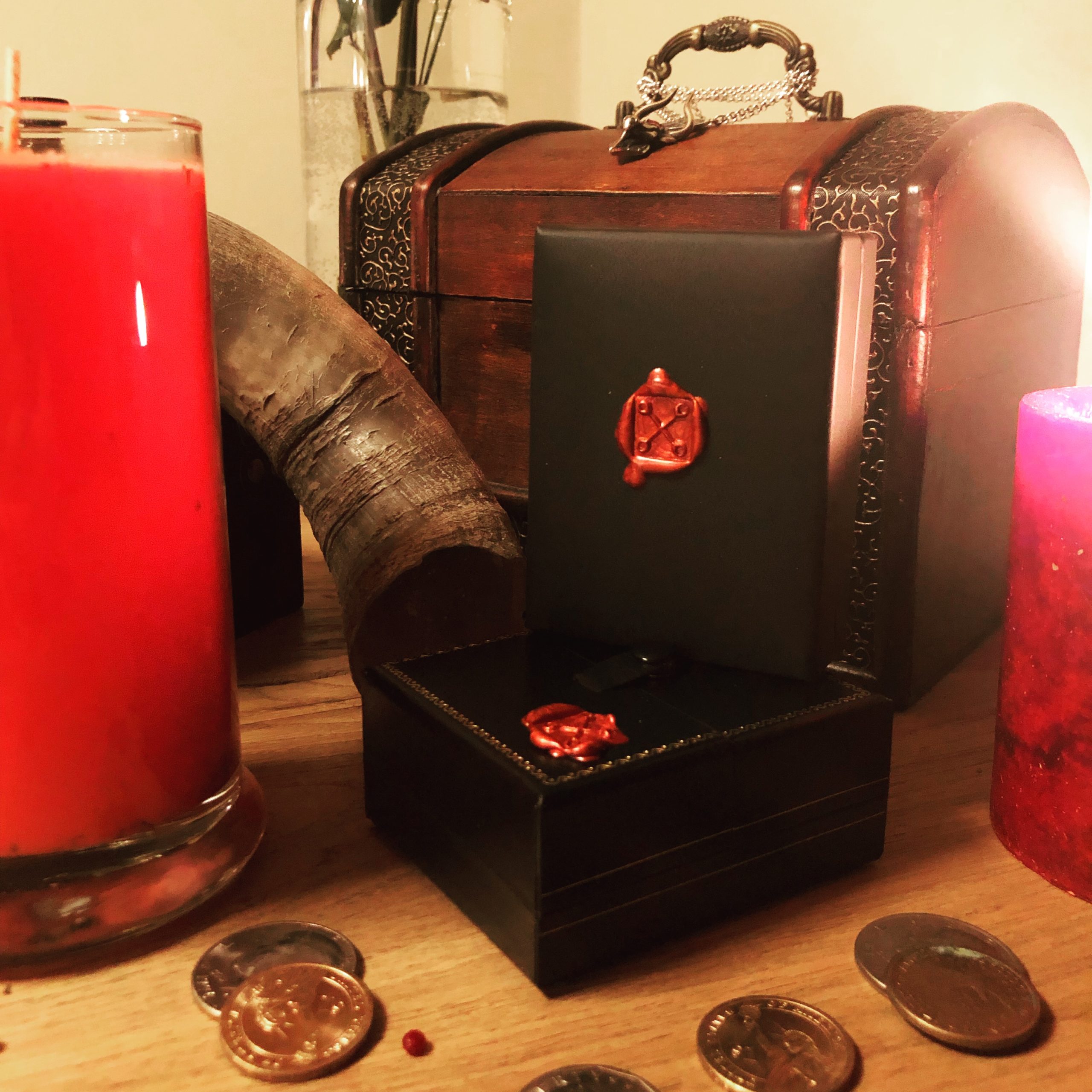 Each Talisman comes with a 20” silver chain, and arrives in a black leatherette pendant box, marked by a wax seal of the glyph of Aldebaran for easy identification.