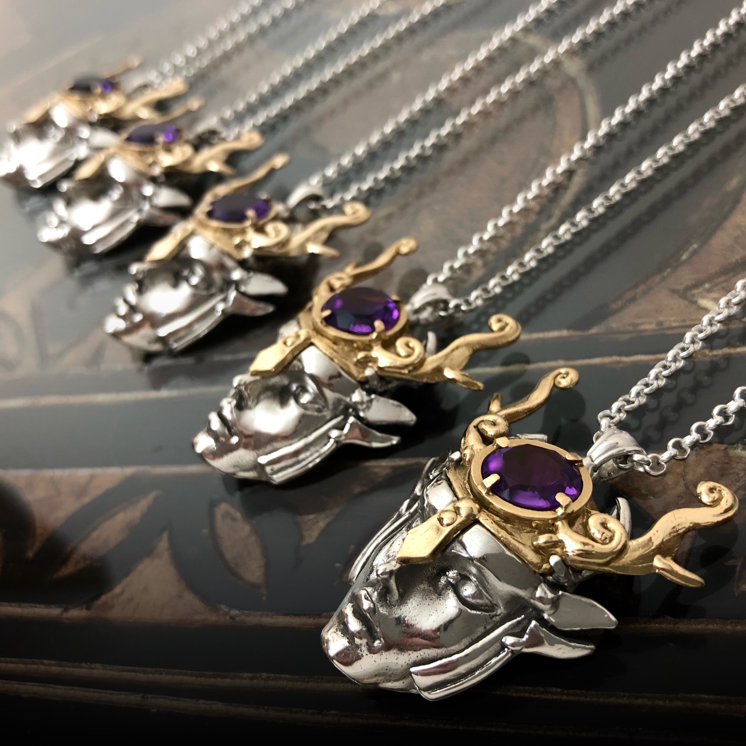 Each talisman arrives in a keepsake jewelry box bearing a wax seal of the sigil of Antares in De Quindecim Stellis, and includes a 20″ silver chain.