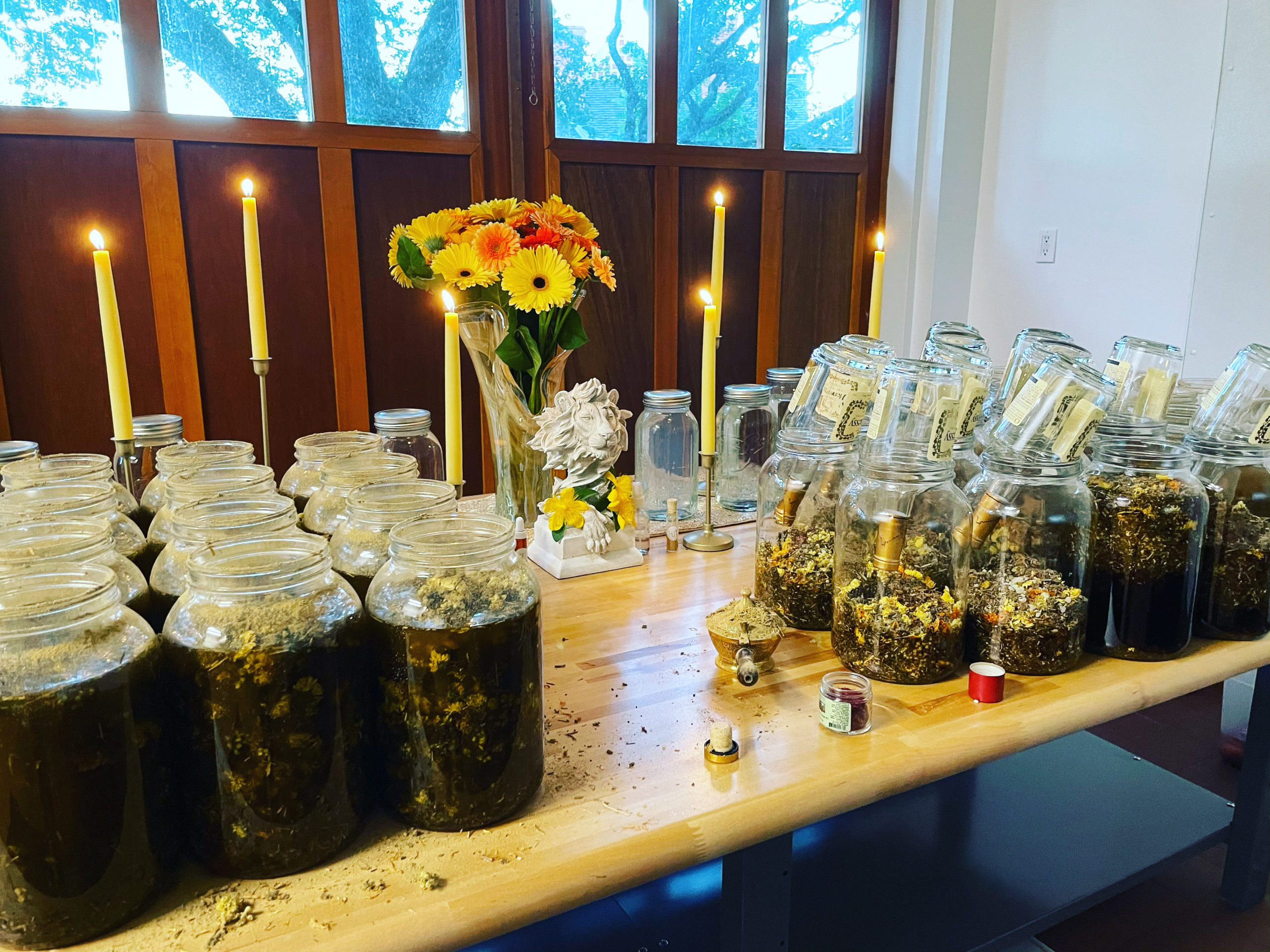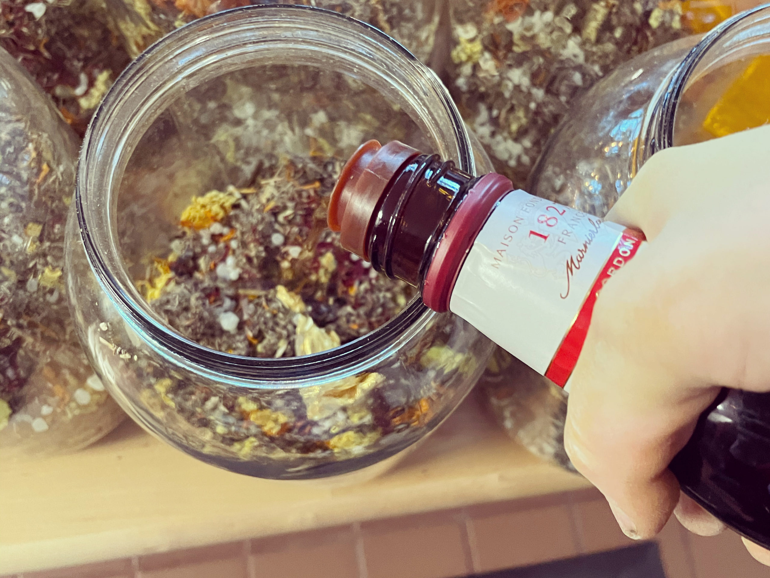 100% ingredients: organic mugwort, goldenseal root, dandelion root, wormwood, calendula, orange peel, red ginseng, turmeric, mastic, saffron, a touch of honey, and 24k gold, immersed in top-shelf cognac following fumigation of frankincense and prayers for Regulus’ blessing during Sphere + Sundry’s third operation for Cœur Leonis.