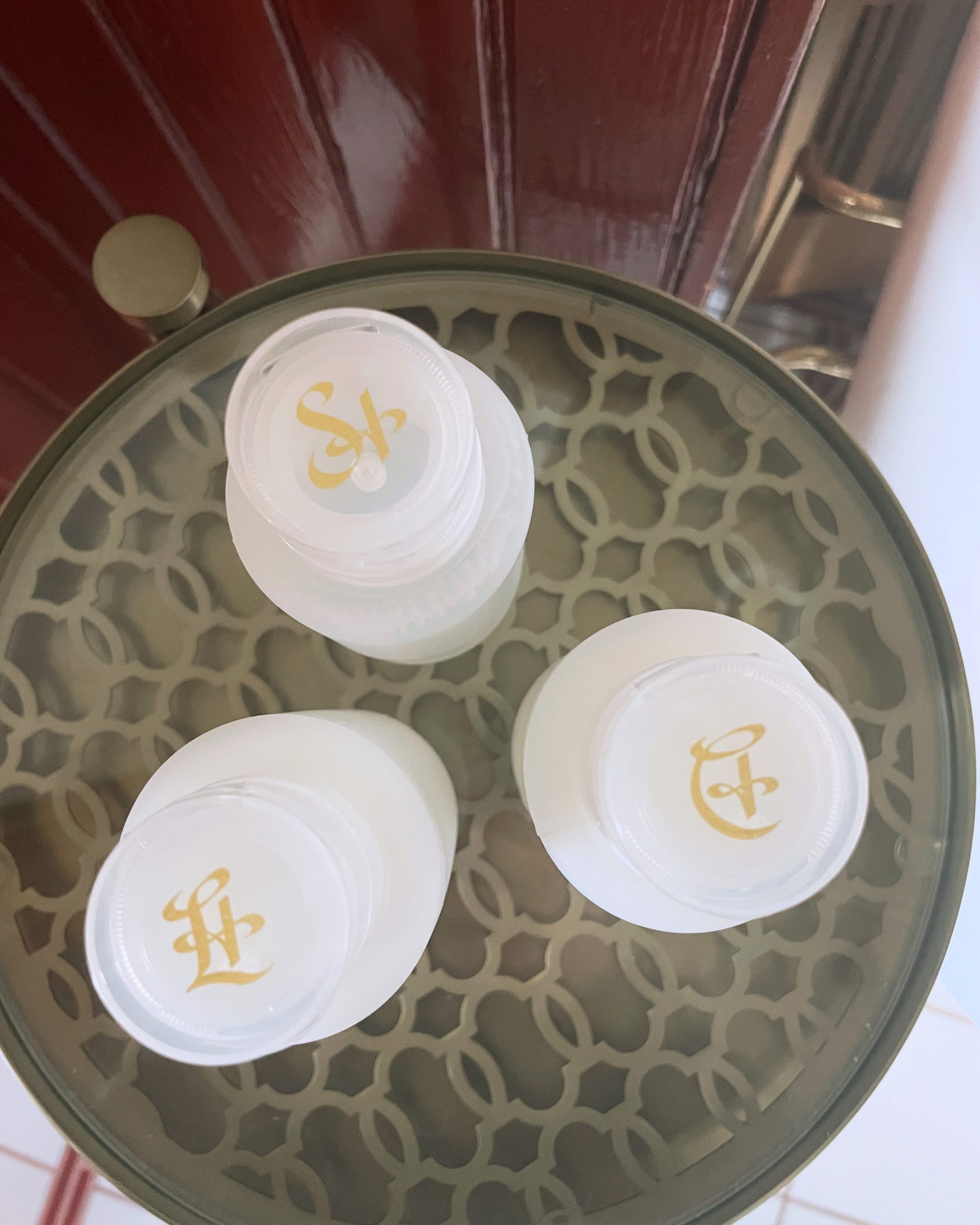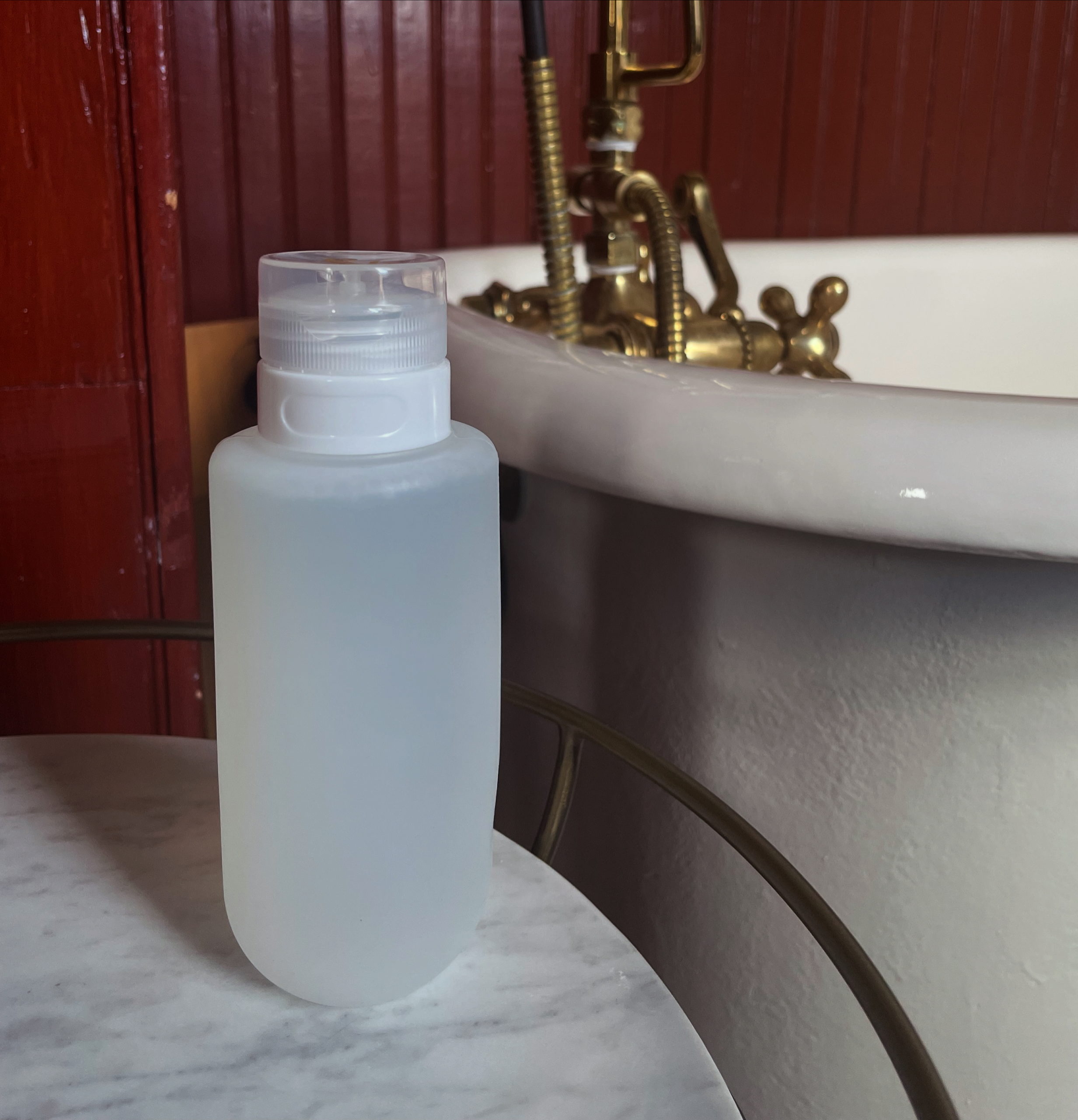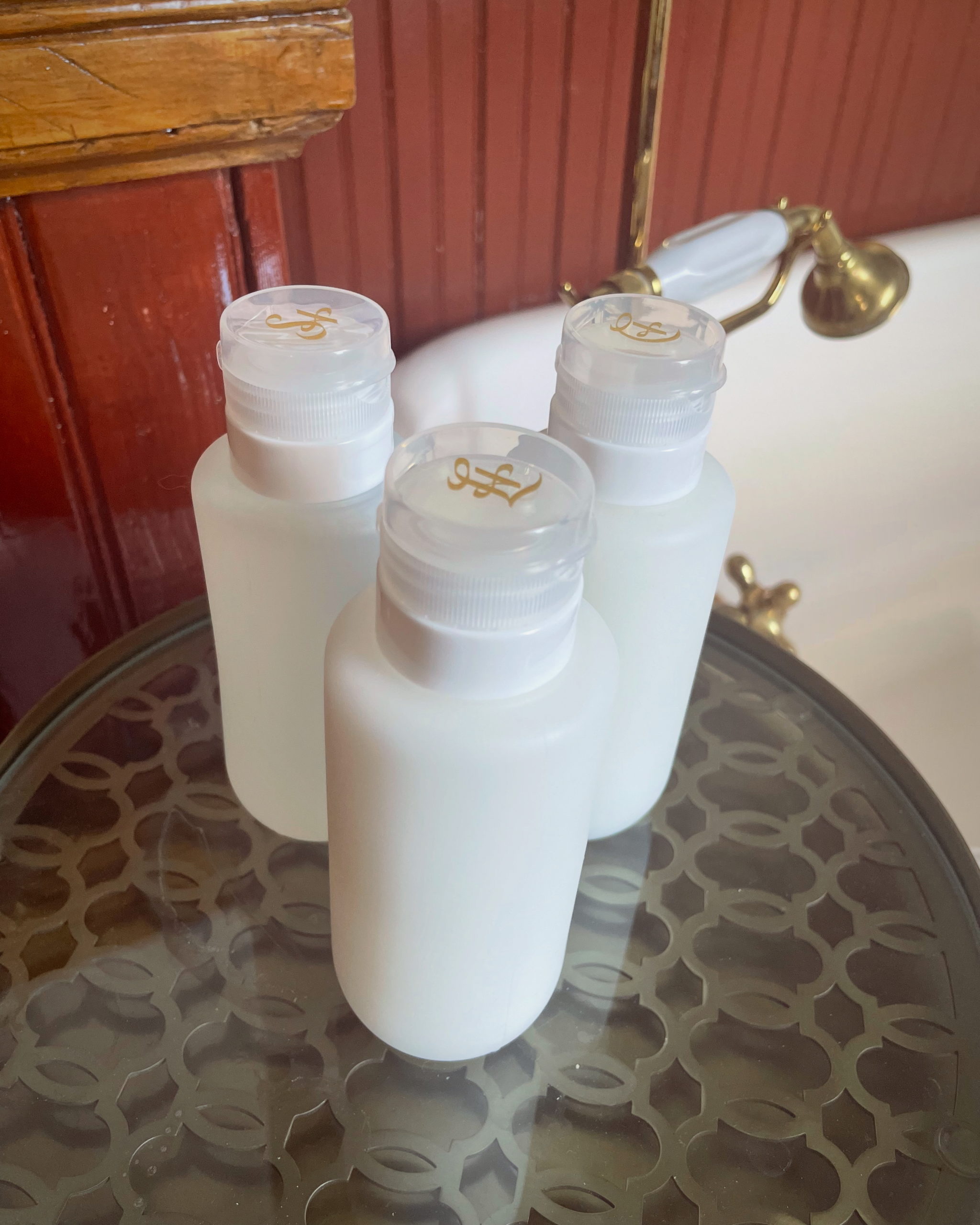 Store these bottles cap-side up in the shower so herbal residue doesn’t clog the spout.