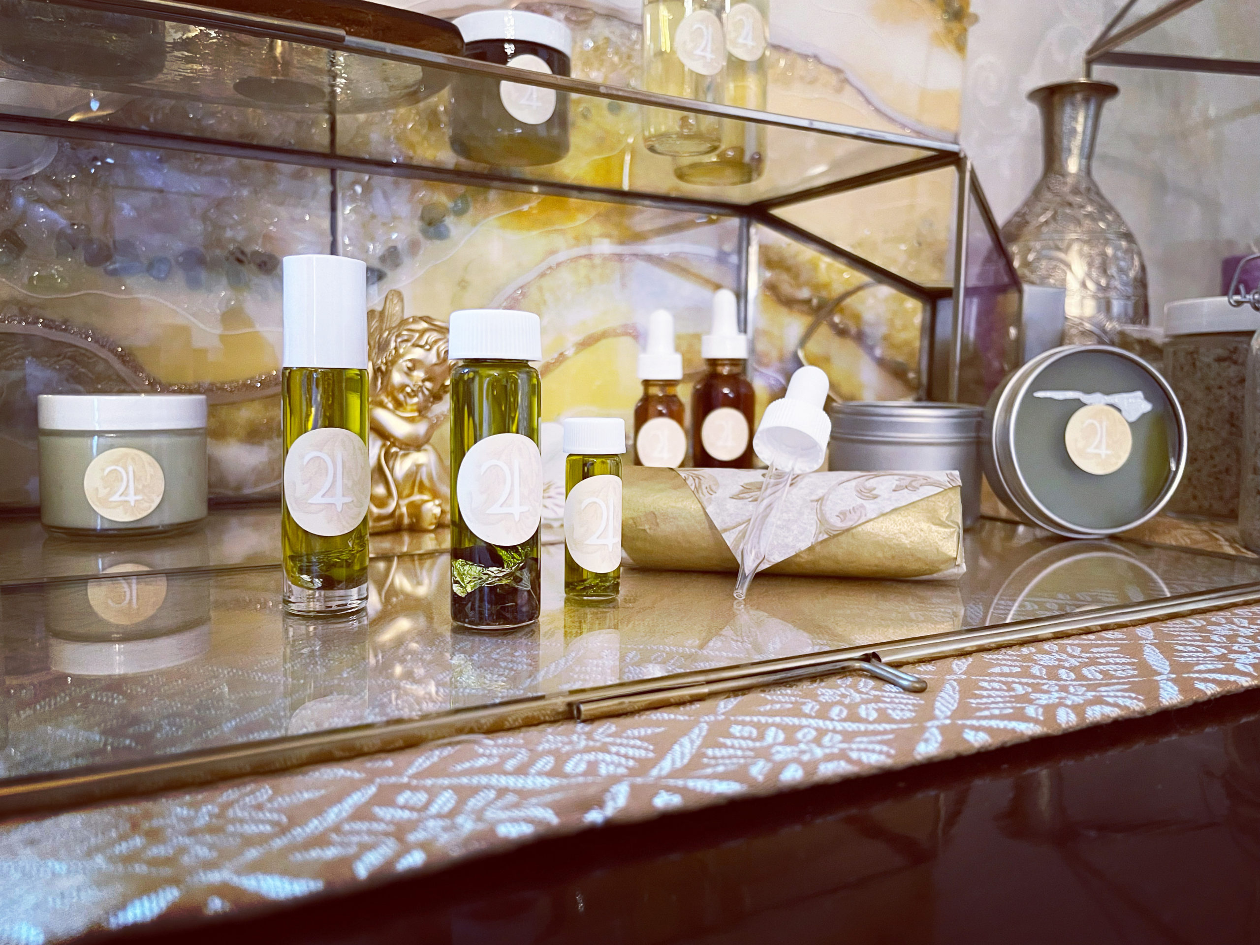 This salve is incredible and was a lifesaver during the seemingly never ending transit of Mars in Gemini. Just a little bit on my feet, neck and jaw and I am completely melted. I tend to hold a lot of tension in my body and this materia helps it melt away. Pairing it and alternating it with Cloud Kingdom has been beneficial for enhanced relaxation and ease with surrender. I love using it before bed as it helps me fall asleep much more quickly and replenishes me via a higher quality of rest.