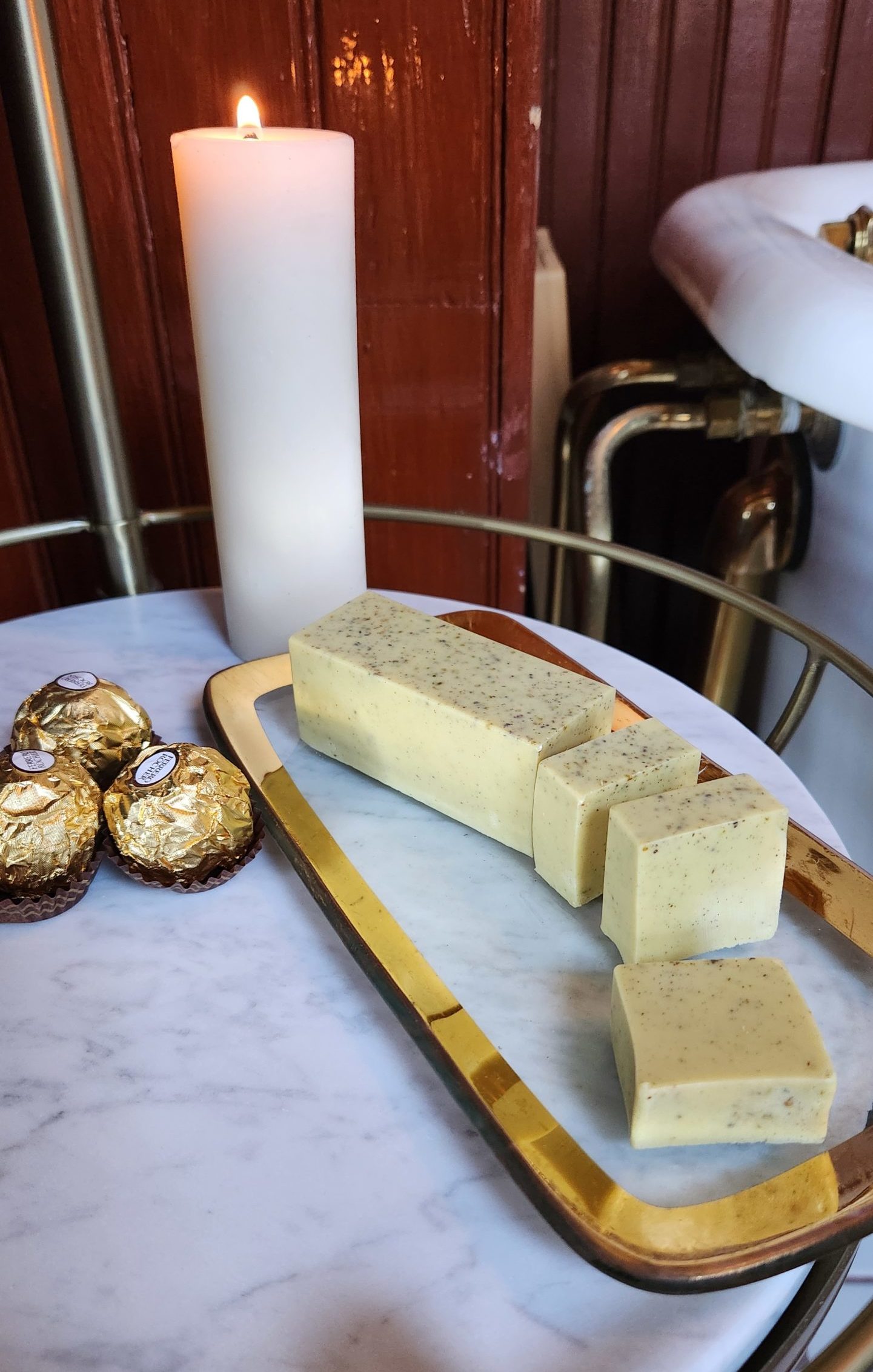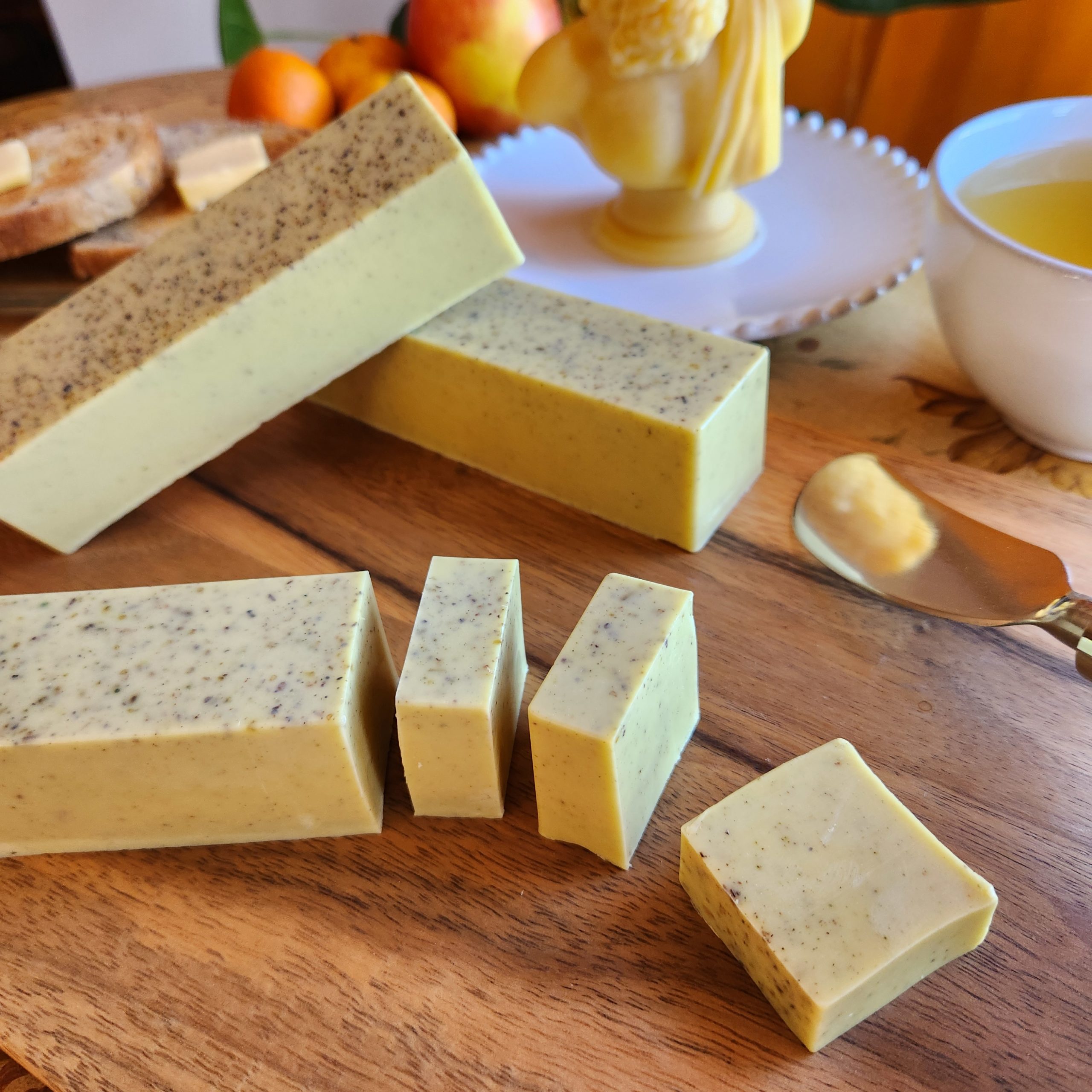 Rich, moisturizing glycerin soap infused with consecrated Butter Ocean materia and organic essential oils. Offered in an oversized bar that comfortably cuts into individual “pats” for more economical use, travel, or gifting.