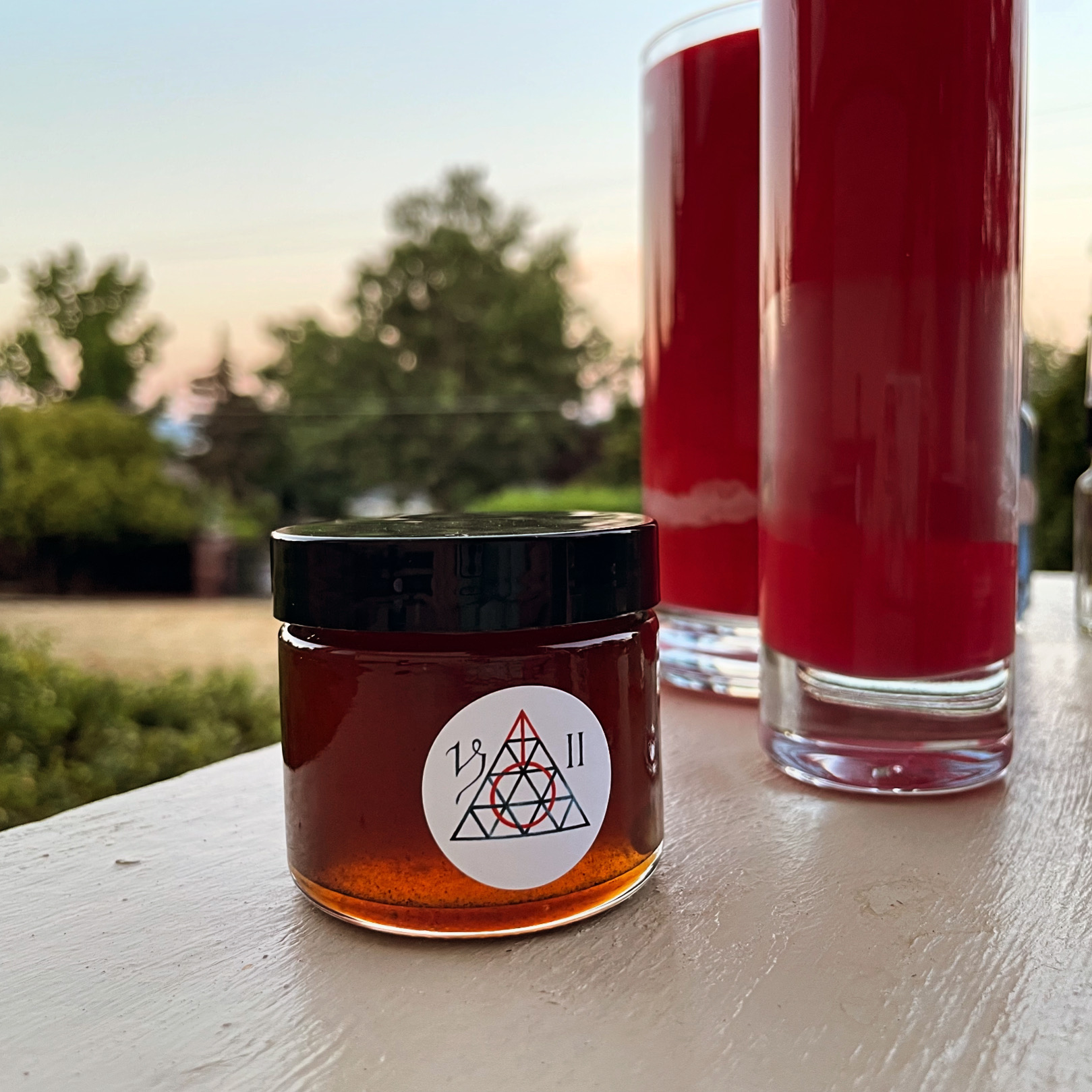 100% organic and wildcrafted ingredients, consecrated under the auspices of Capricorn II’s election and imbued in organic honey. Strained and bottled with a piece of keepsake red chalcedony.