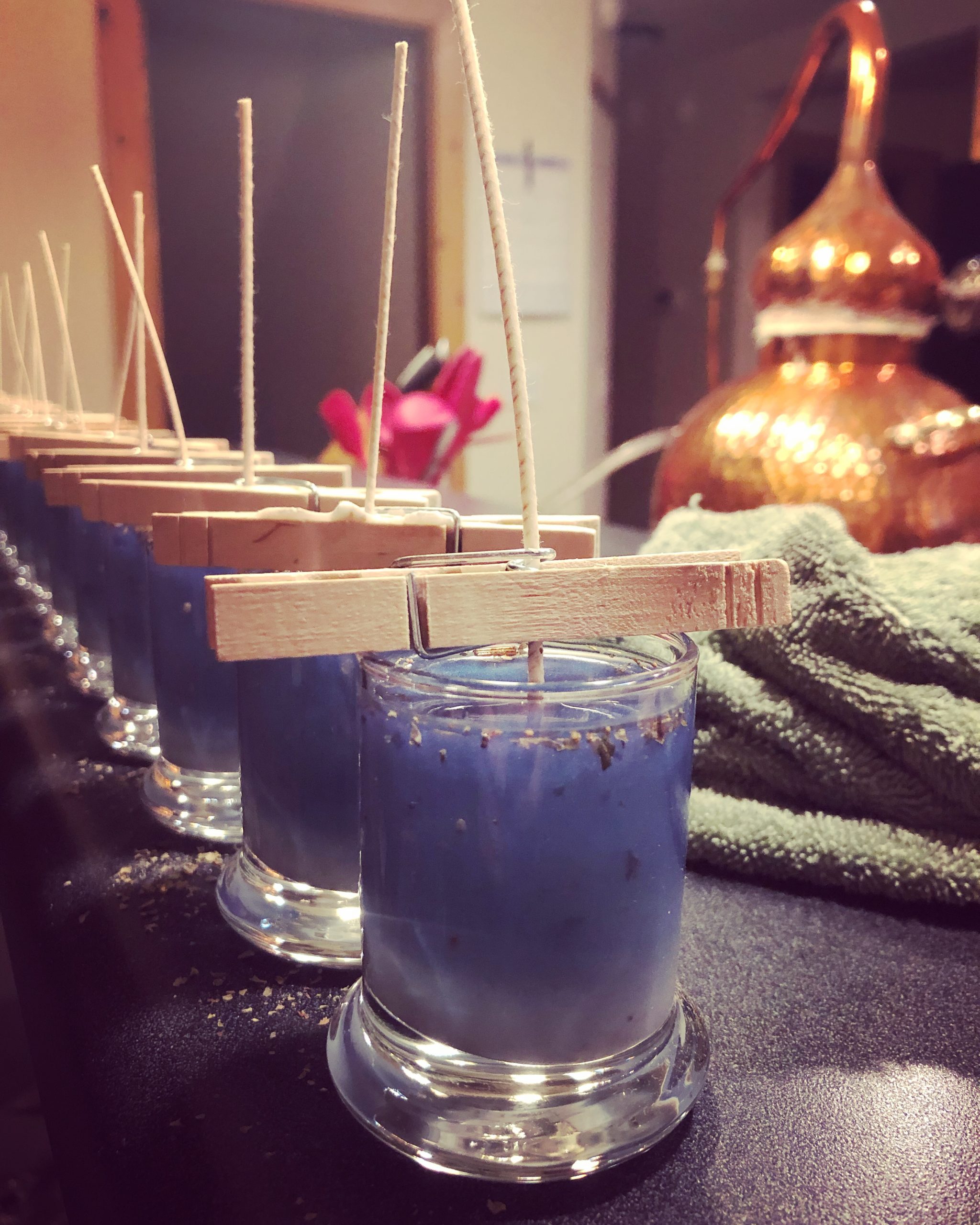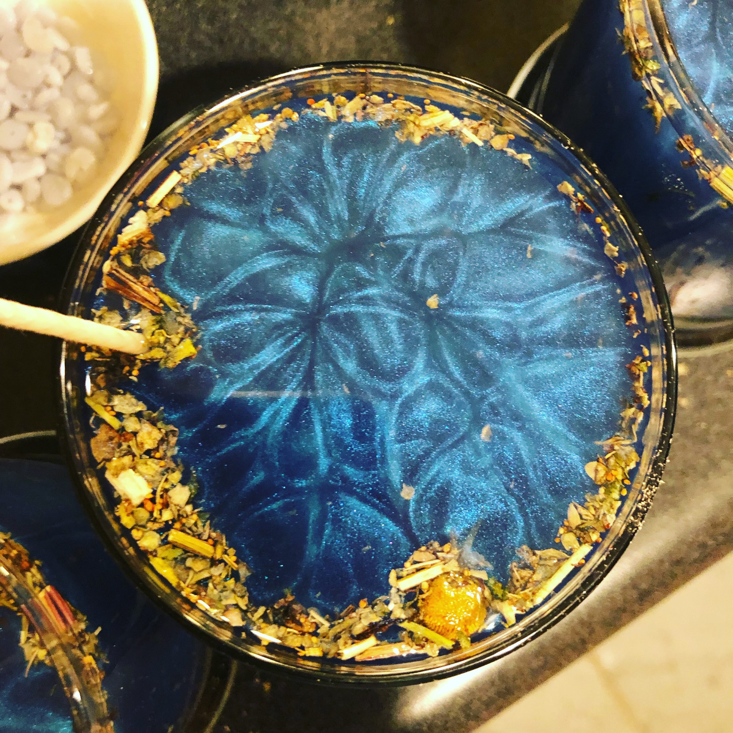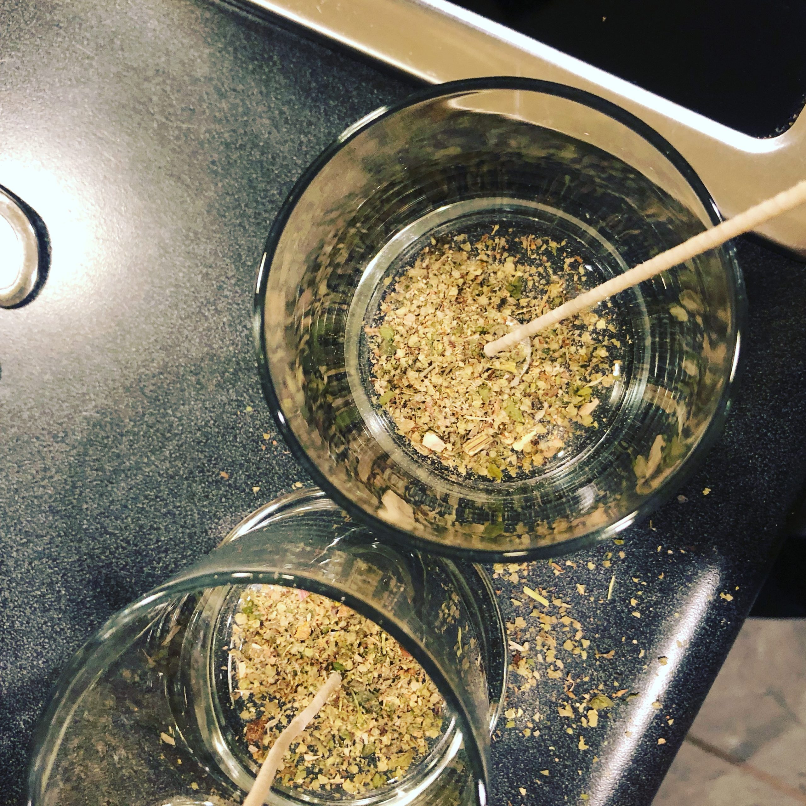 Virgin soy wax was poured over consecrated Deneb Algedi herbal mix during the Full Moon conjunct the asterism, 2019.
