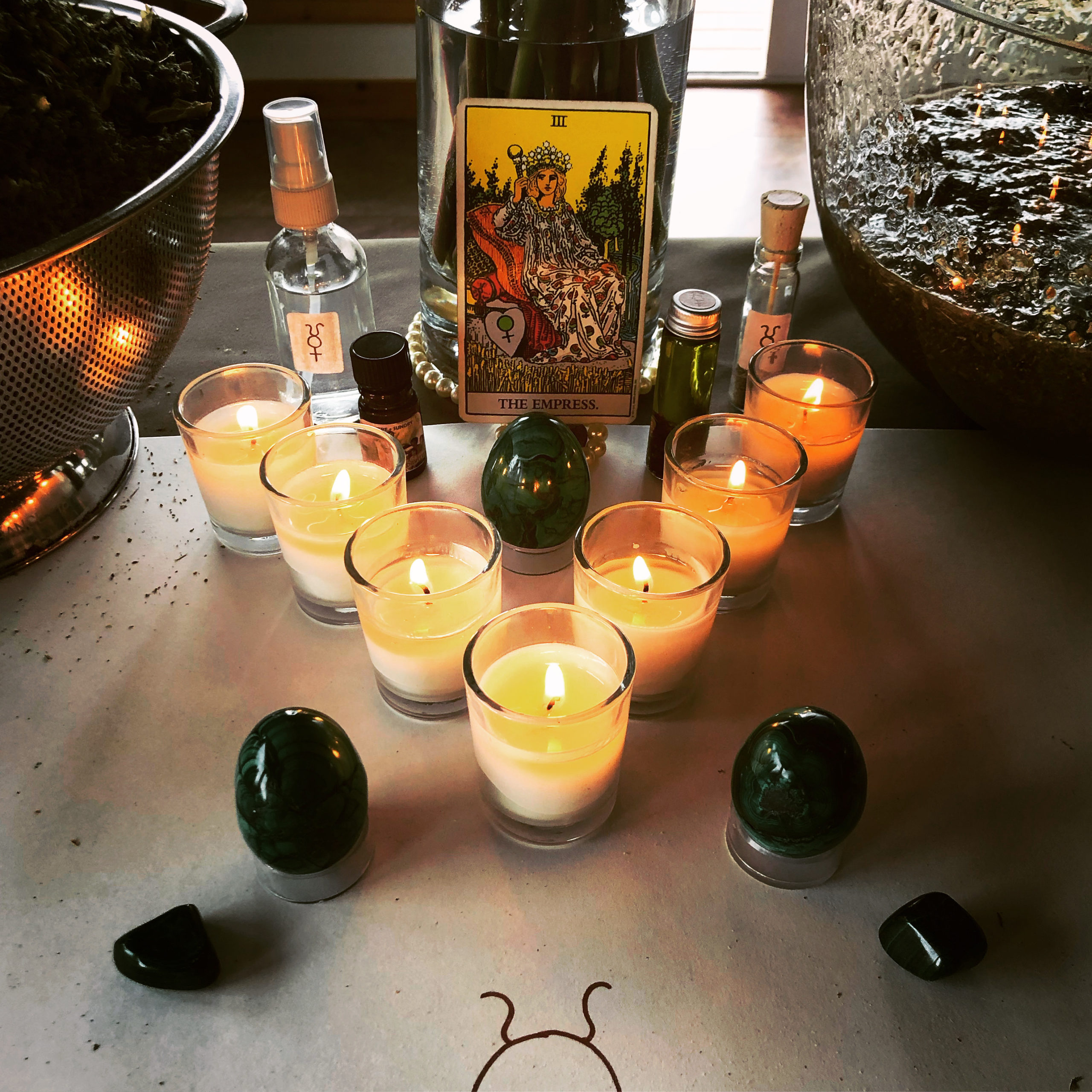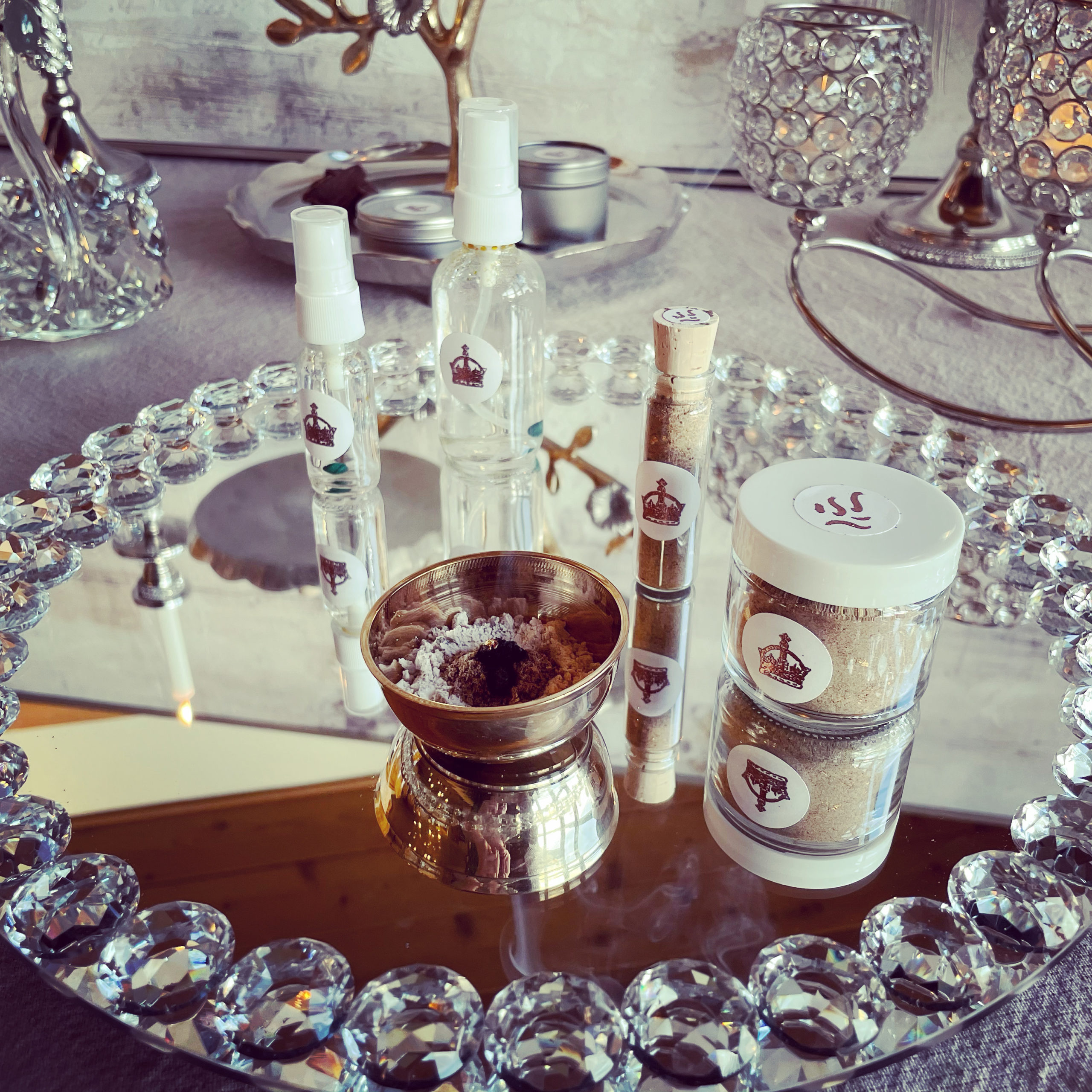 Smoke bathe one’s own vessel to clear away limiting beliefs and feelings, all the while embodying the Empress, in her infinite charm, competence, grace, and gravitas. Works just as well before entering the boardroom as the boudoir.