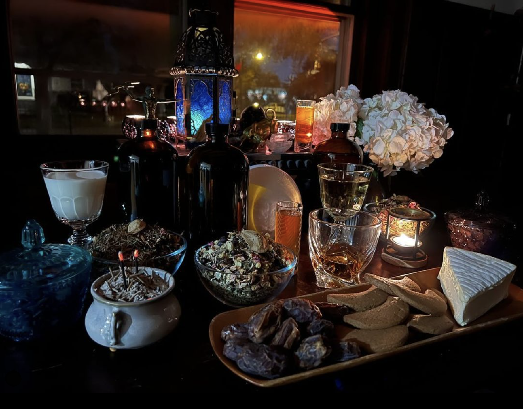 Cedar leaf and essential oil (Juniperus monosperma), rose absolute and rose petals from the TAL garden (Rosa damascena), wild rose petals from the TAL garden (Rosa nutkana), holy basil (Ocimum tenuiflorum), fig leaf, twig, and root from the TAL garden (Ficus carica), dragon’s blood resins (Dracaena draco and Daemonorops draco), rose hips from the TAL garden (Rosa rubiginosa), sage leaf from the TAL garden (Salvia officinalis), saffron threads (Crocus sativus), moonflower petals from the TAL garden (Ipomoea alba), red lotus petals (Nymphaea rubra), frankincense essential oil and tears (Boswellia sacra), Moroccan chamomile essential oil (Ormenis mixta), wild-harvested California black walnut leaf and bark (Juglans califomica), white oak bark (Quercus alba), juniper berries and essential oil (Juniperus communis), wild-harvested coast live oak leaf and bark (Quercus agrifolia), wild-harvested valley oak tree leaves (Quercus lobate), calamus (Acorus calamus), hyssop essential oil and leaf from the TAL garden (Hyssopus officinalis), nutmeg essential oil (Myristica fragrans), wild-harvested dandelion leaf and root (Taraxacum officinale), burgundy pitch (Pini burgundica), clove essential oil and bud (Syzygium aromaticum), Irish moss (Chondrus crispus), cinnamon bark (Cinnamomum verum), patchouli root, leaf and essential oil (Pogostemon cablin), butter CO2, Guatemala balsam (Myroxylon balsamum (L.) Harms Var perierae), fir needle essential oil (Abies balsamea), and pine essential oil and needles (Pinus sylvestris).
