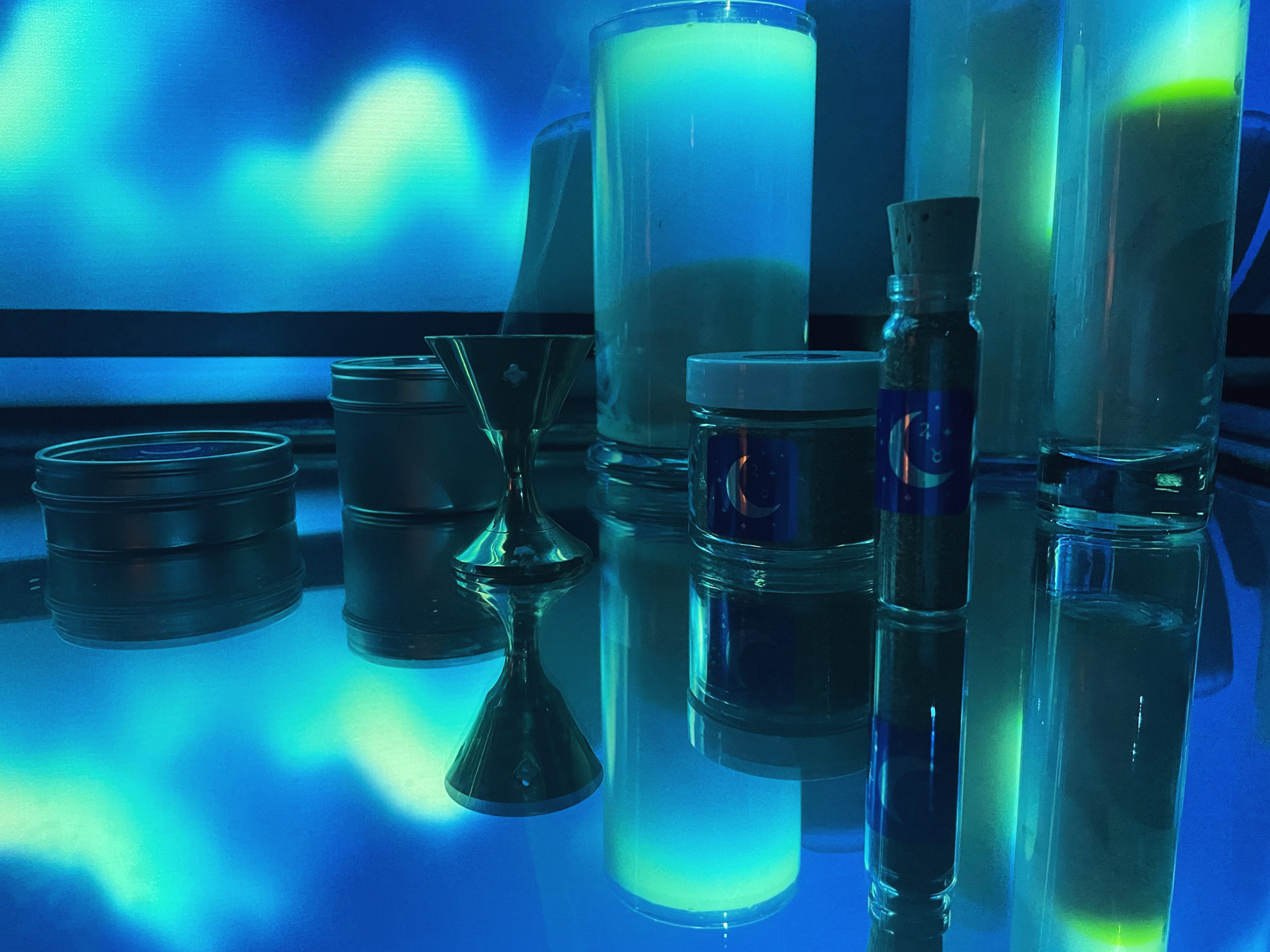 Fumigated wildcrafted and organic herbs of Lunar, Taurean, and Jupiterian ilk, consecrated at the height of Exalted Luna’s election. Ground with myrrh, rose petals, tonka bean, remedial-grade pearl, moonstone, and white gold.