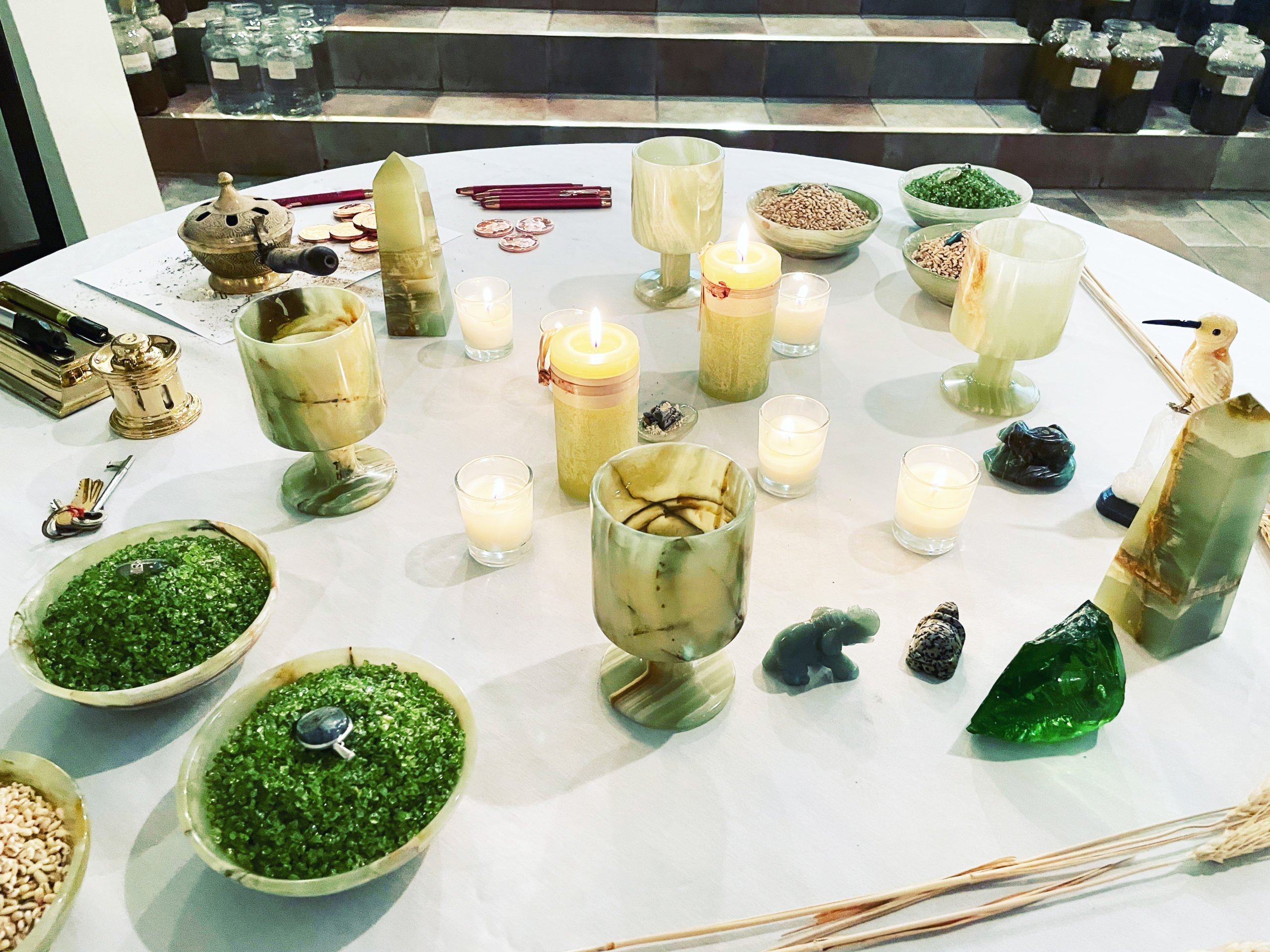 One of *each and every item* in Sphere + Sundry’s Exalted Mercury series, in small, large, or standard form, including a Talisman.