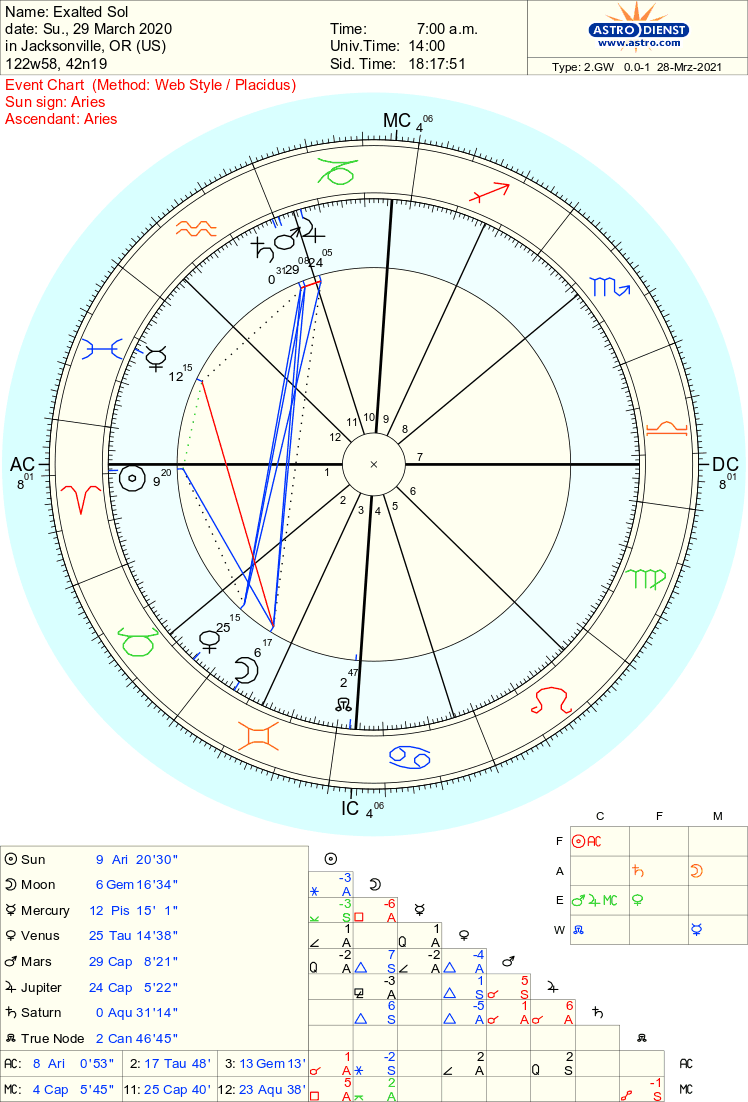 | Creation Date | Sunrise, Sunday March 29th 2020, hour of Sol. Chart in image gallery. |