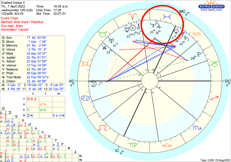 Morning of April 7th, 2022. Hour of Venus. Chart in image gallery.