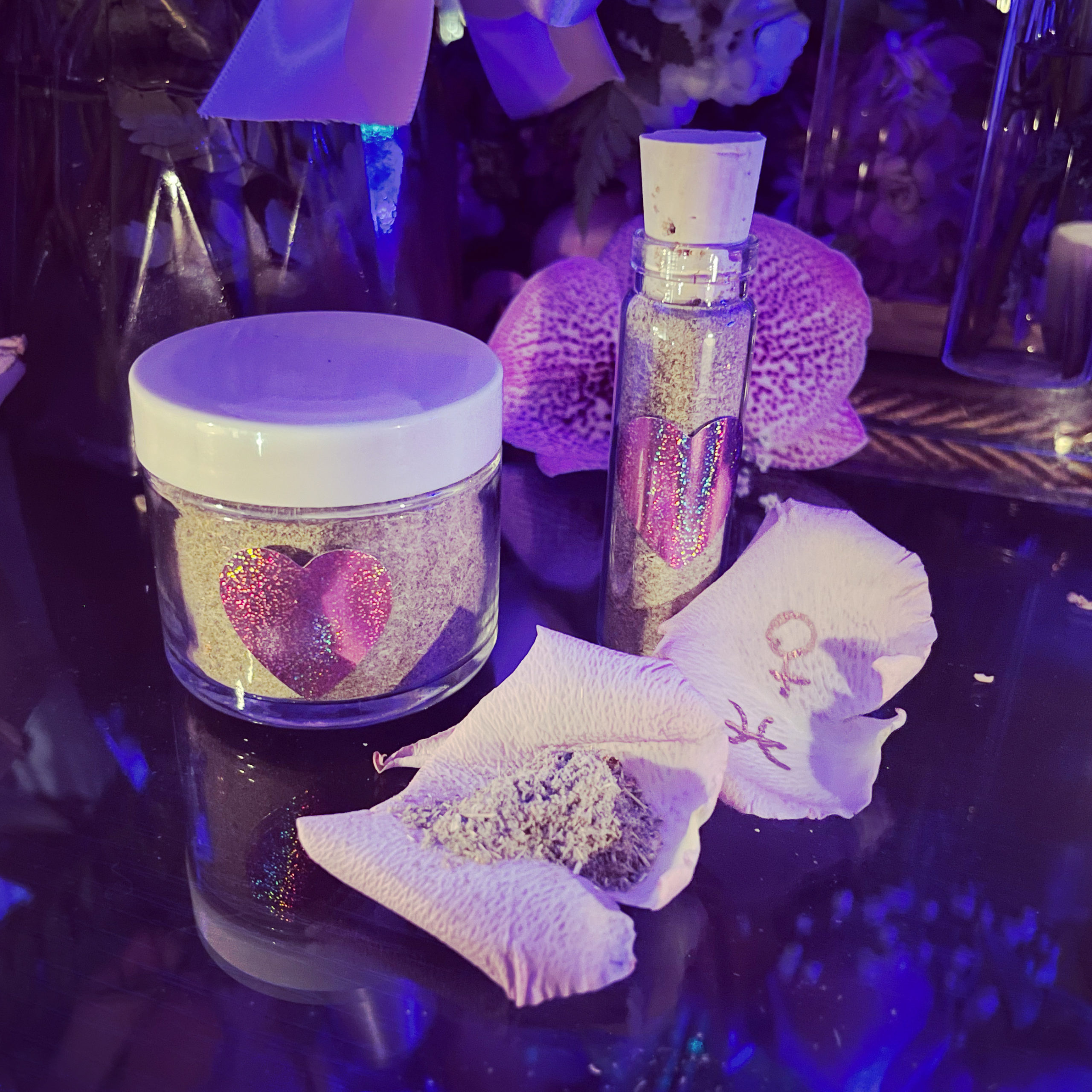 Add to hair products or carry a sprinkle on your person/ purse to carry the influence with you, drawing gifts, kinder treatment, adoration, and affection from those you encounter, softening your way through the world.
