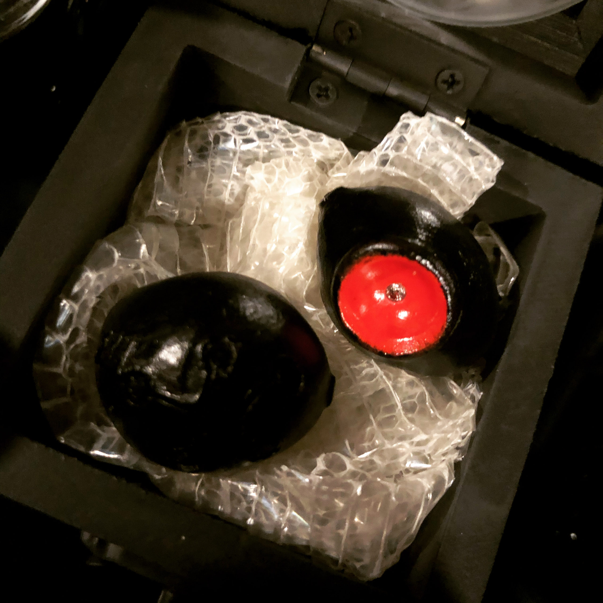 These Algol Eyes feature a hole through the center, meaning they can serve as standalone talismans or as beads. Each Eye includes one of the toothpicks used to create and maintain these holes, which carry quite a charge on their own and can be applied in any manner usually reserved for nails, thorns, or pins.
