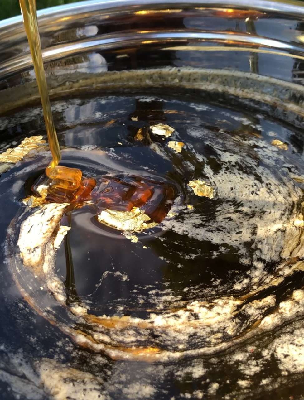 Using this along with TM honey as an offering, this one I'll use in tea or cookies when my ritual offering is complete. The honey, soap, and ink of Golden Sol II have turned out to be amazing materia for me. Less intense than the oil and water, but absolutey beautiful to work with.
