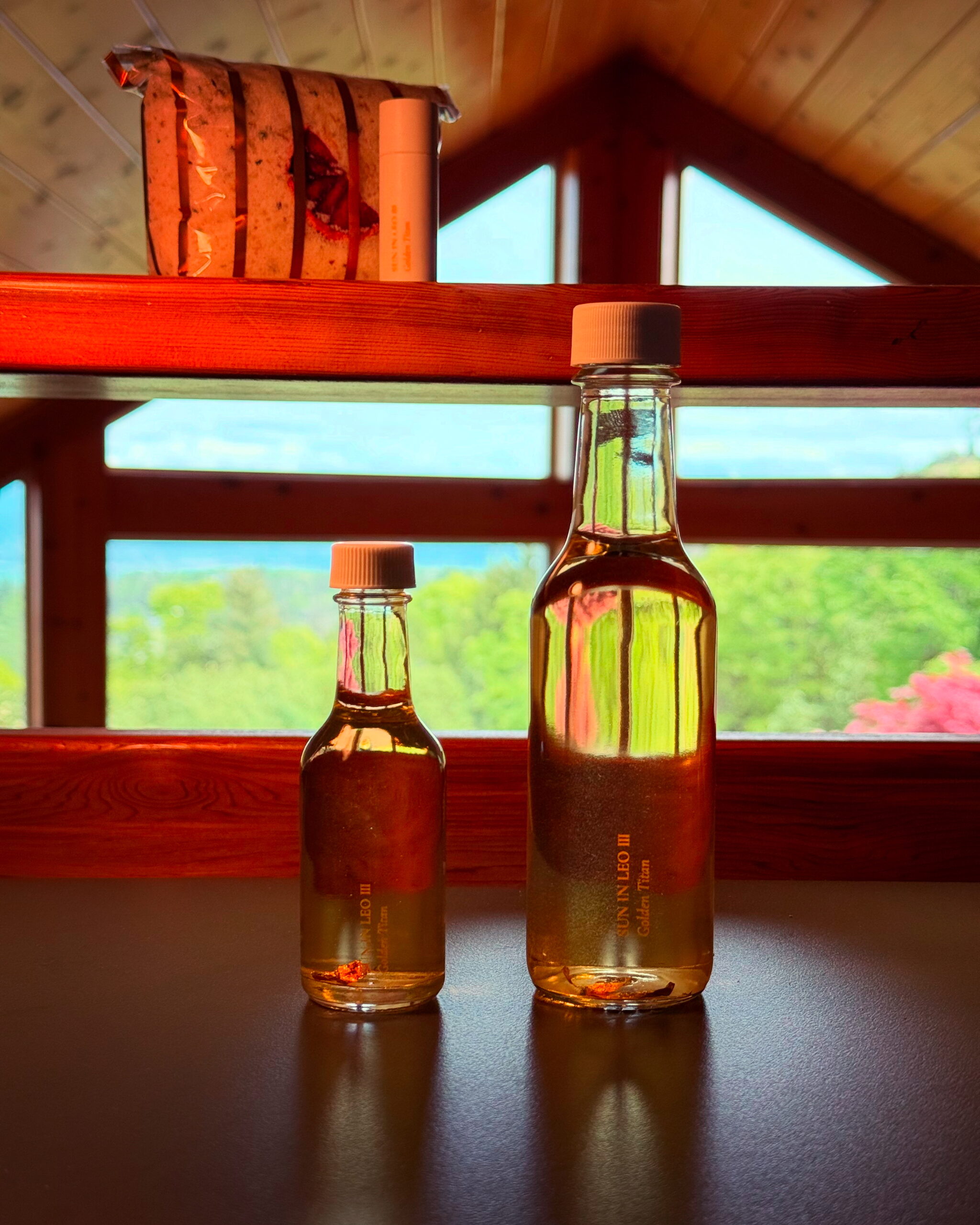 Consecrated, distilled Golden Titan herbs — organic and wildcrafted — along with organic cane alcohol, essential oils of helichrysum, frankincense, pine, liquidambar, and genuine 24k gold.