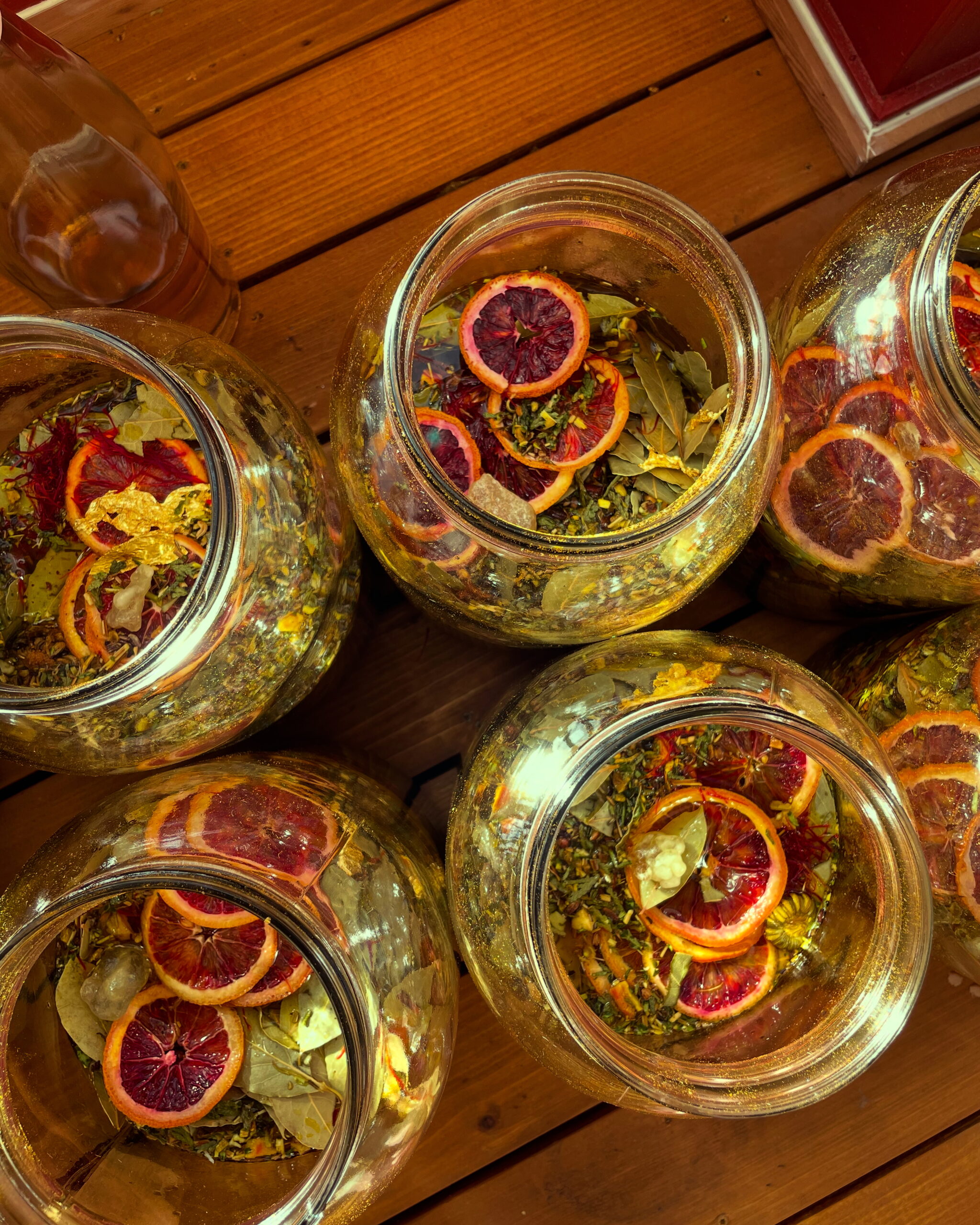 Organic and wildcrafted oils and herbs: jojoba oil ritually infused with ginger, milk thistle, bay laurel, clove, rue, cedar, cinnamon, orange peel, calendula, turmeric, St. John’s wort, and calamus, mixed with organic shea butter, beeswax, and essential oils of helichrysum, carrot absolute, and frankincense.