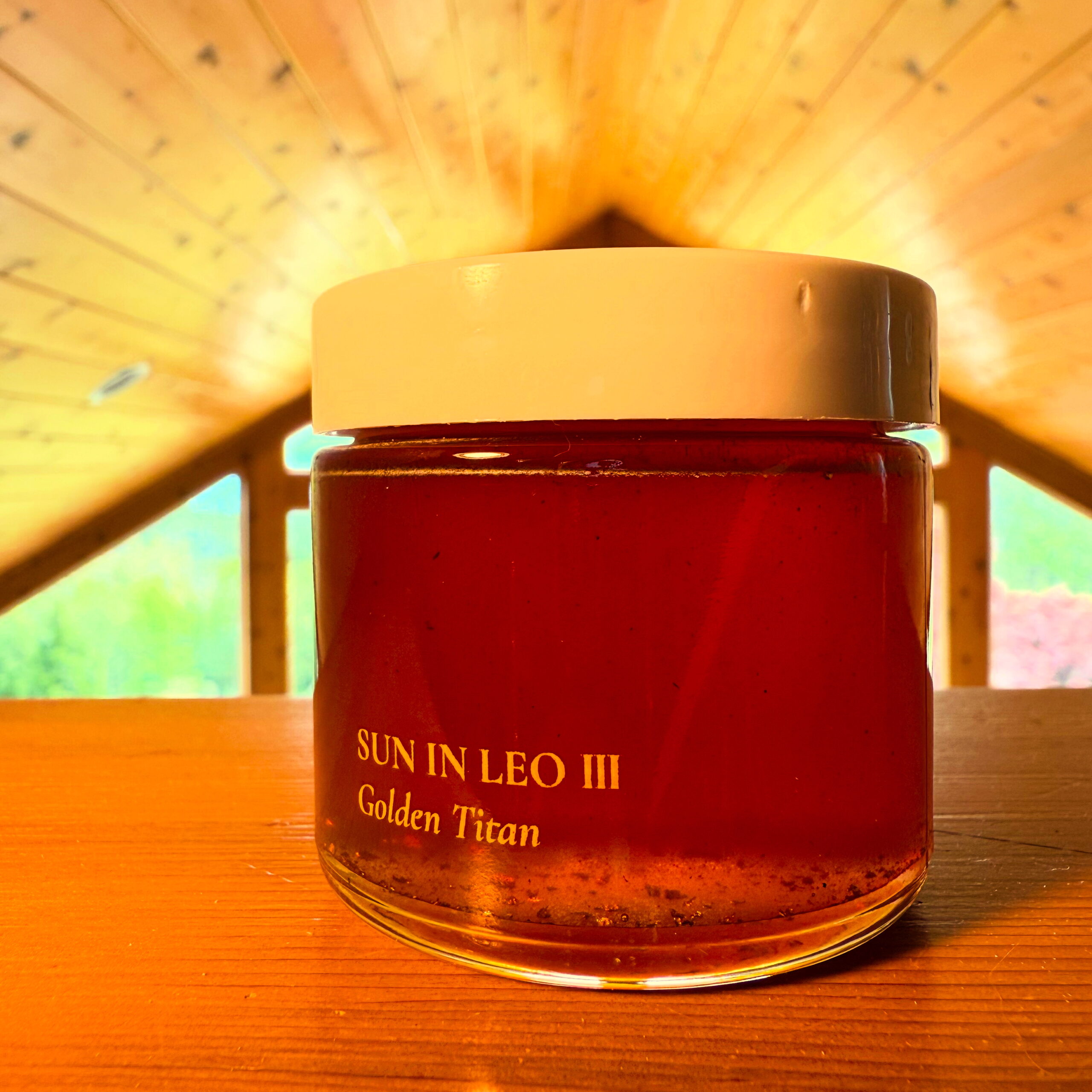 Consecrated Golden Titan edible herbal blend (full ingredients listed below), steeped in organic clover honey, mixed with edible 24k gold.