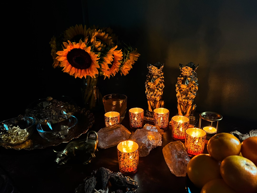 Note the dual crowned lions on her Altar setup, mirroring the Gemini influence!