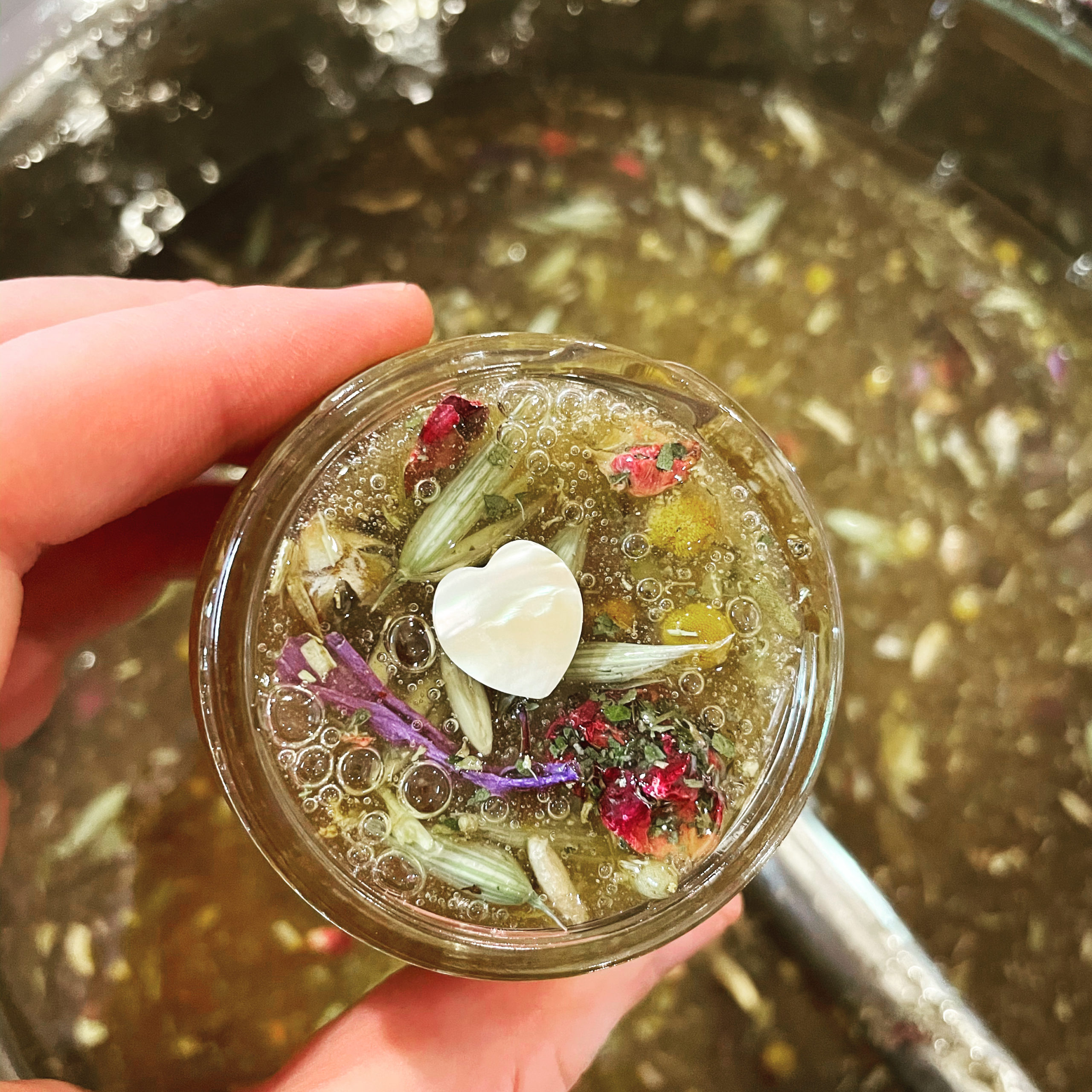 Offered in a 2 oz jar with keepsake mother of pearl heart for $33