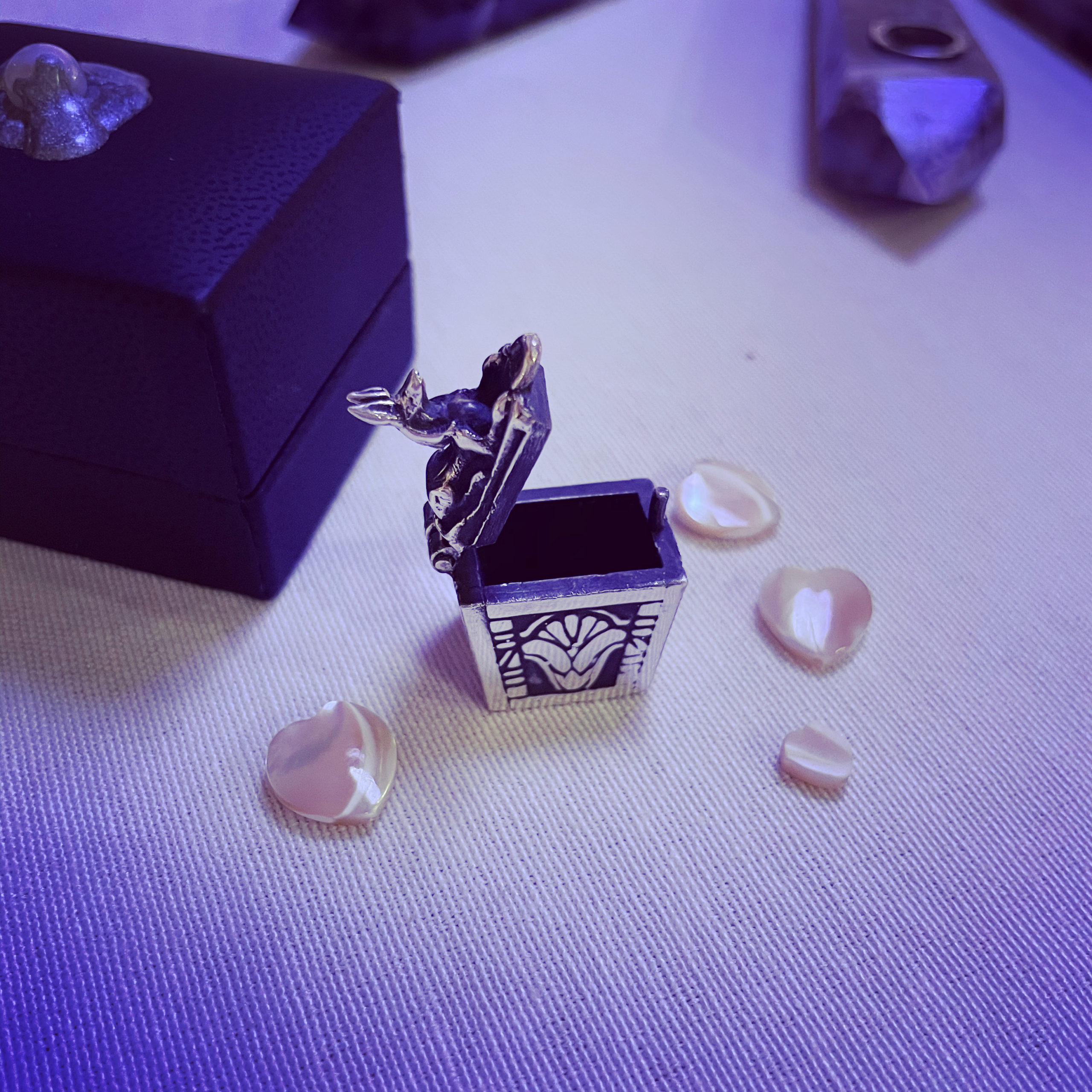 (Rather precious) Anubis reliquaries cast on the night of the Immortal Heart by Tony Mack, which open to reveal a small cavern, ready to receive whatsoever the client chooses. Keep as an altar piece, or carry along your daily Way.