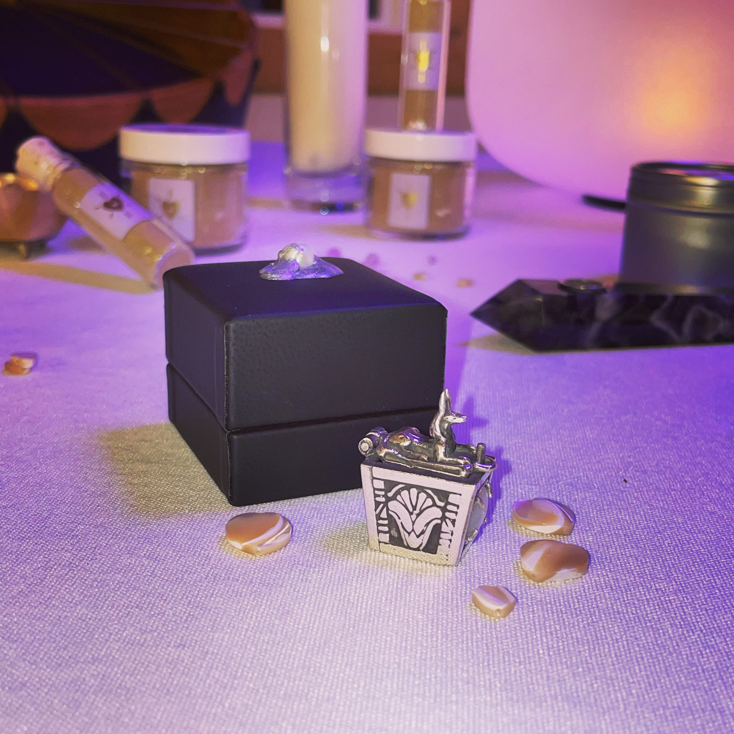Modeled in hard carver’s wax and cast in fine silver on September 16th 2020 on the planetary night and hour of the moon; during the new moon in the third Decan of Virgo. This casting was not accompanied by petition or suffumigation; its focus being on one’s personal relationship with the deceased.