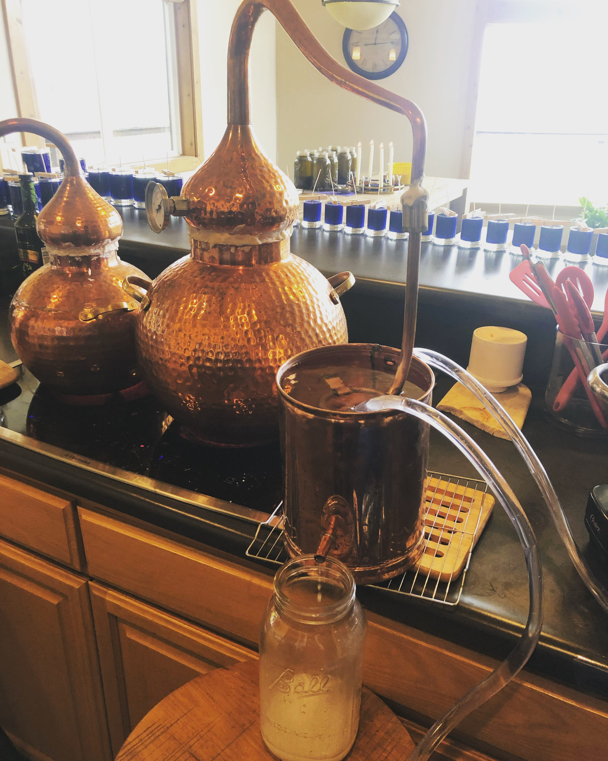 Golden and clear drops of essential oil resulting from the distillation are still present, in some bottles more than others. These are completely natural, not any indication something is amiss.