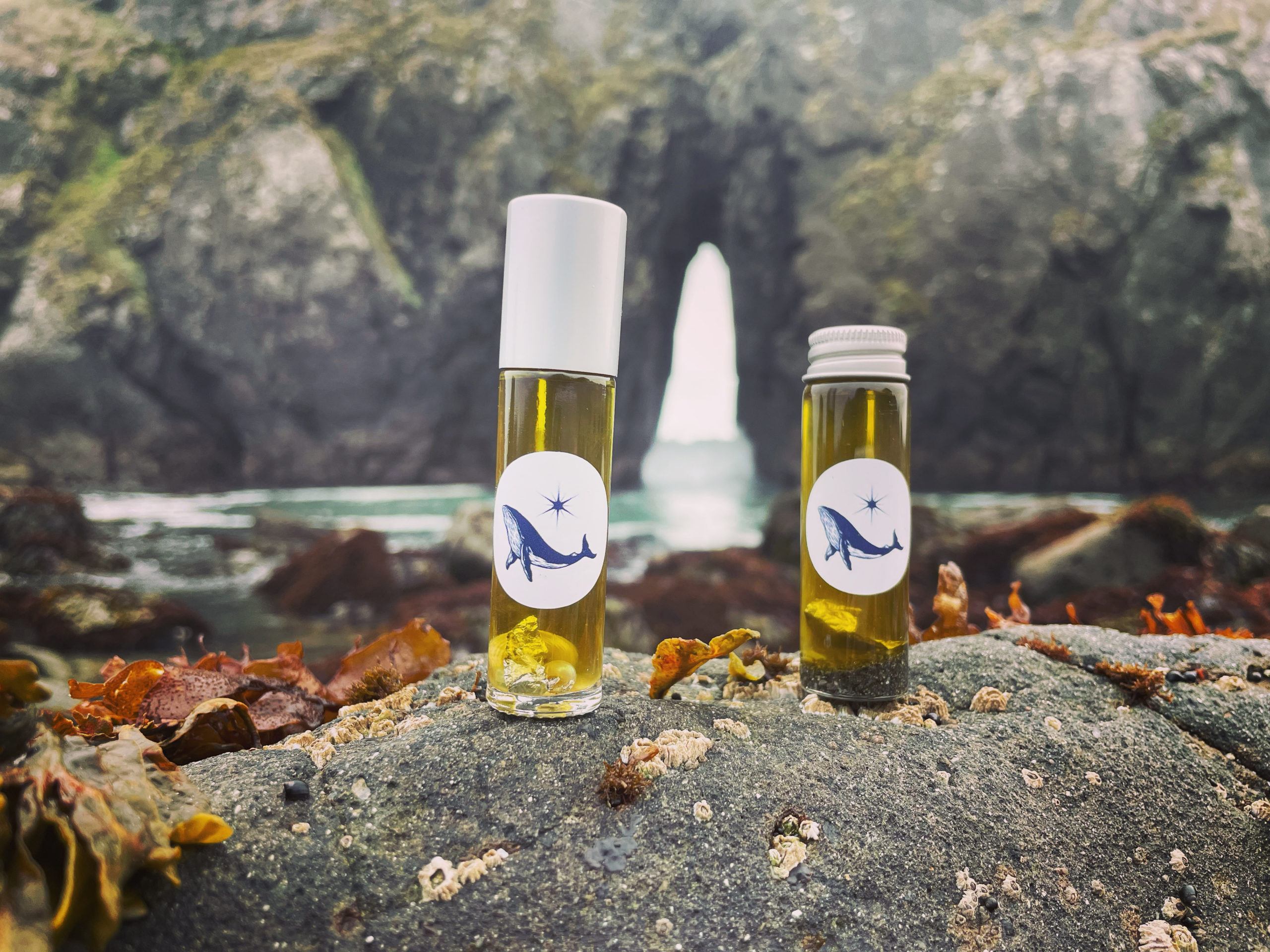 Seaweed, blue lotus, aquamarine, mother of pearl, and sundry herbs inclined the influence of Fomalhaut, Jupiter, and the goals of this series’ operation, ritually fumigated and infused in 100% organic MCT oil during Sphere + Sundry’s brief election window. Almost entirely organic, including its absolutes and essential oils.
