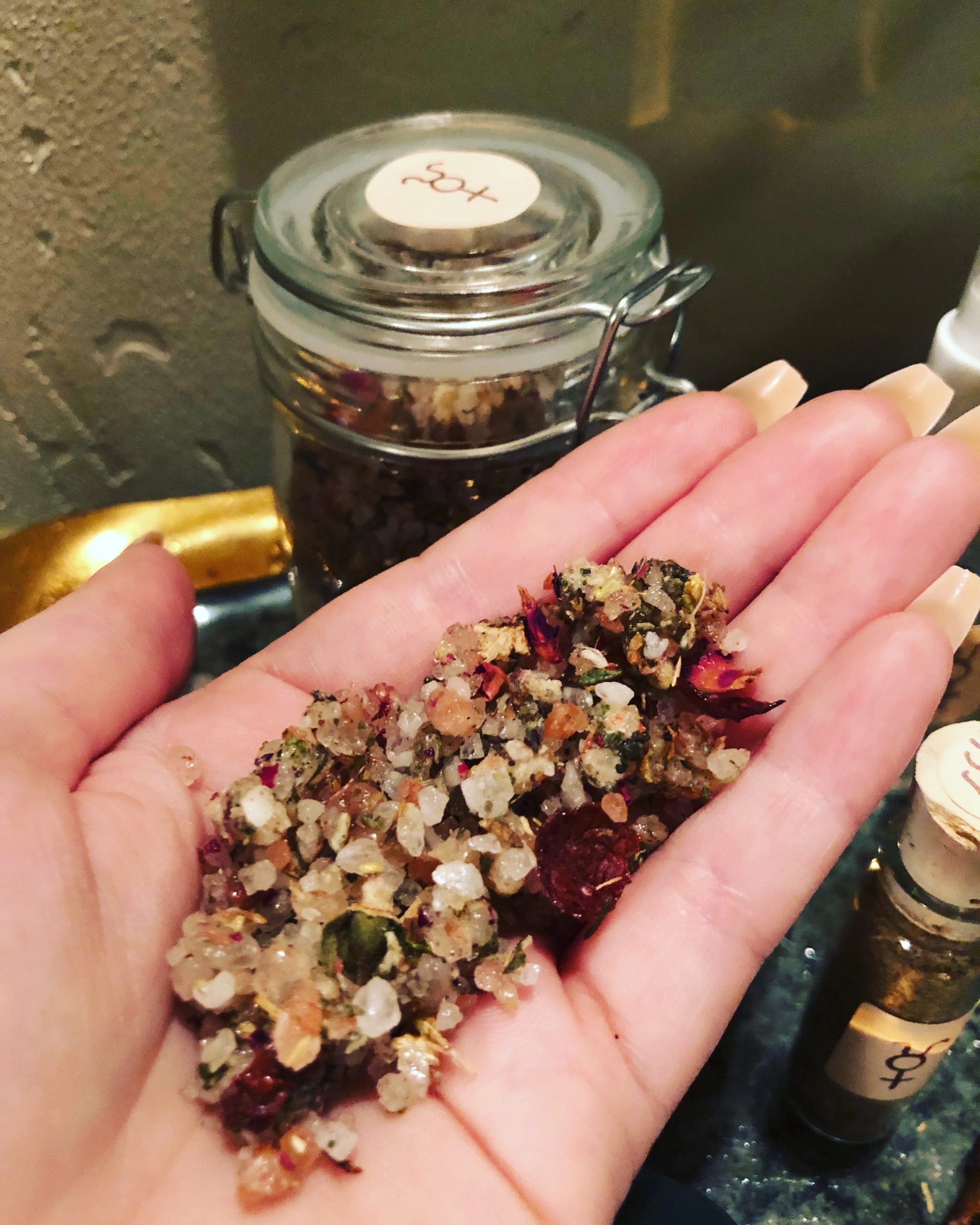 Consecrated organic Venus in Taurus herbal base was ritually combined to talismanic standard with pink Himalayan salt, skin softening Dead Sea salt, rose petals, organic powdered milk, and honey on a supremely fine Venus in Taurus election.