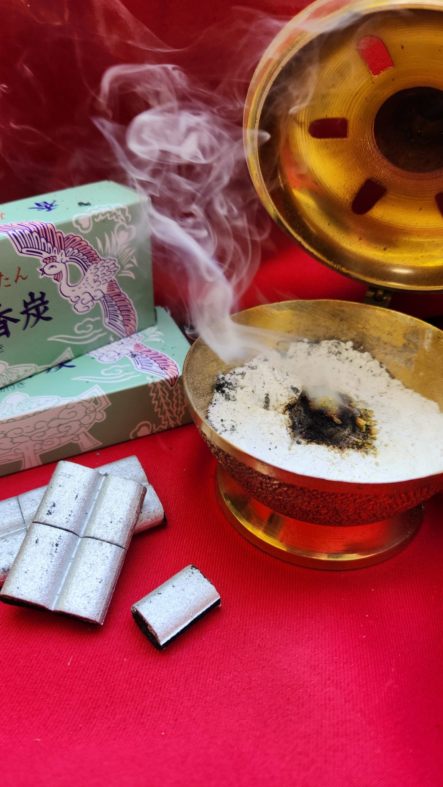 A beautiful box of 48 premium Japanese charcoal briquettes for burning loose Incenses.