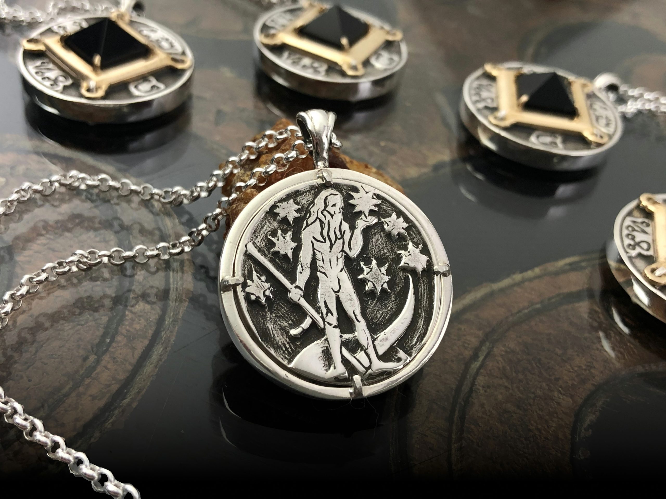 Resident Sphere + Sundry goldsmith Tony Mack offers to Saturn in Capricorn an unparalleled run of (DROP DEAD GORGEOUS) talismans in the form of pendants and coins, modeled after one of our earliest private collaborations — a set of Degree of Exaltation Saturn rings from its time in Libra 2011, which are worn during the preparation of all our Saturnian sacraments.