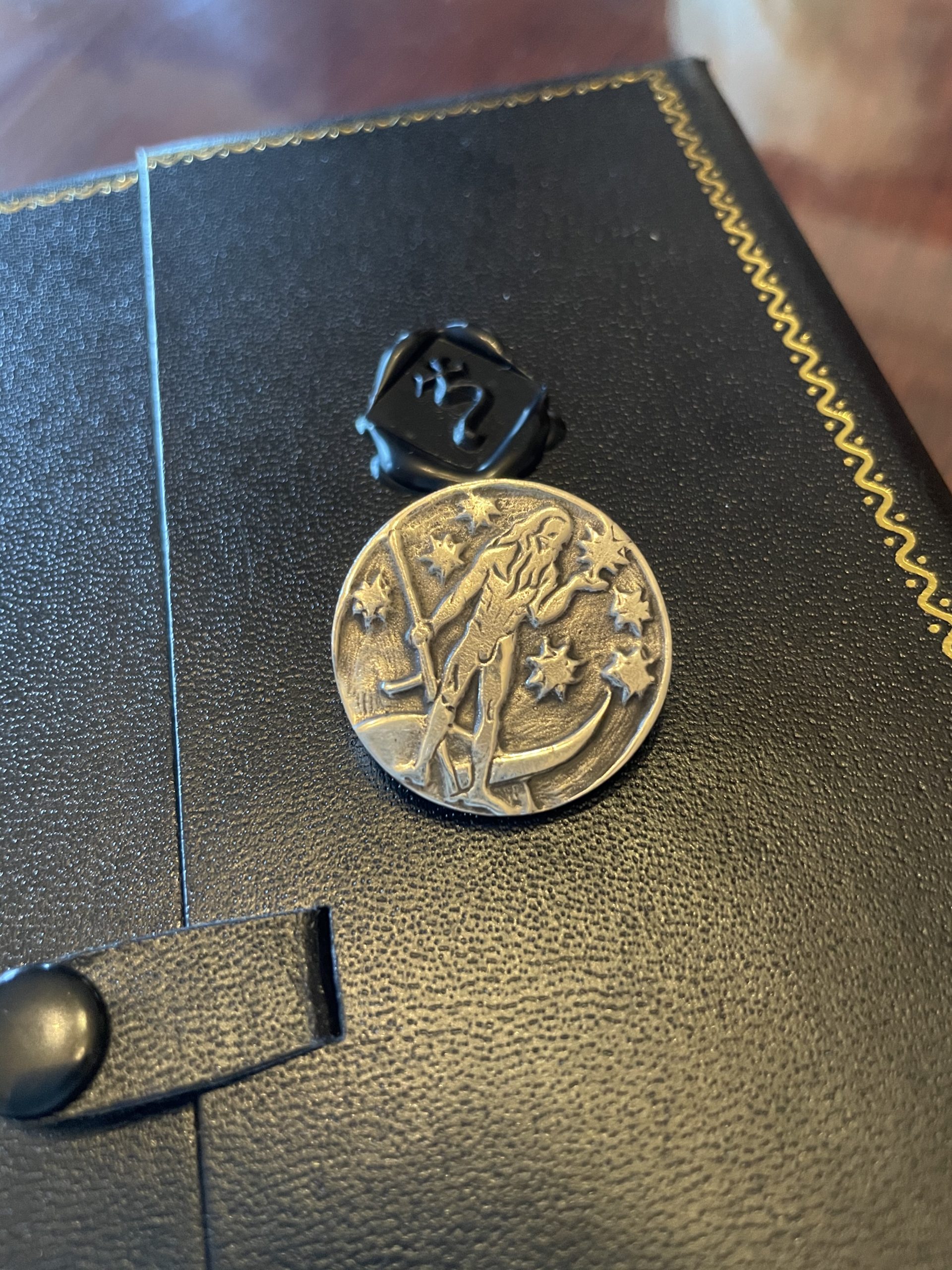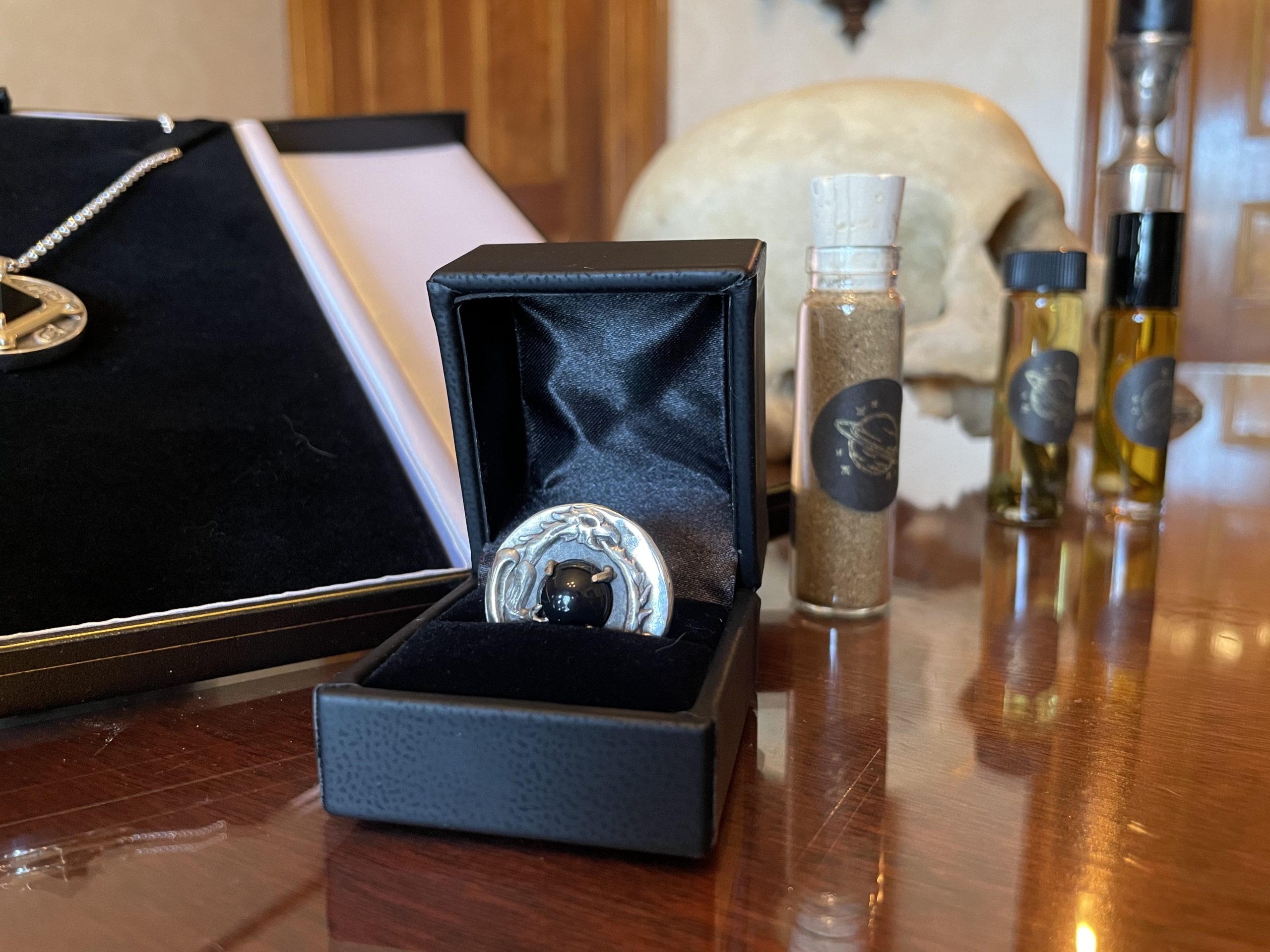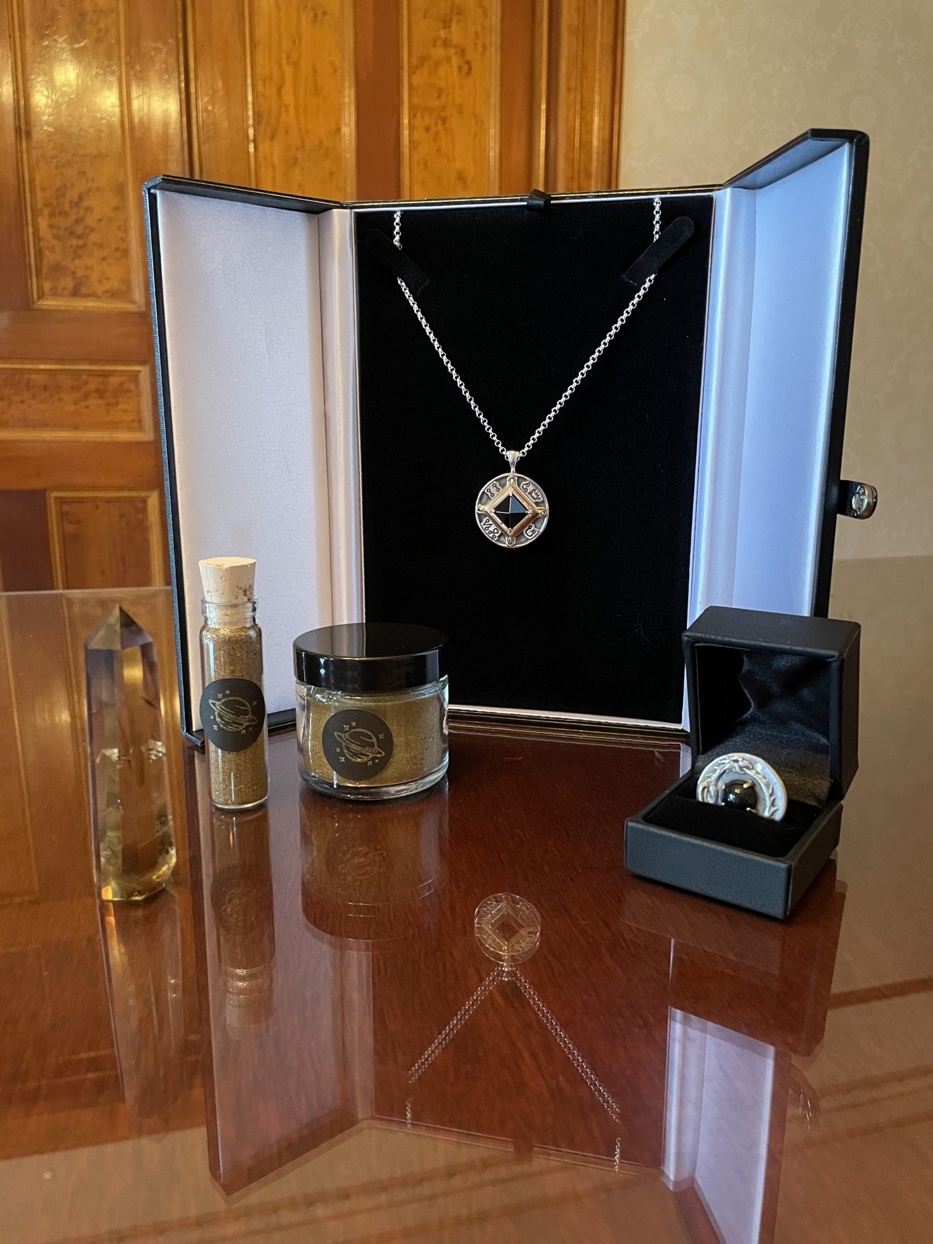 Each talisman arrives in a keepsake jewelry box bearing a wax seal of the glyph of Saturn.