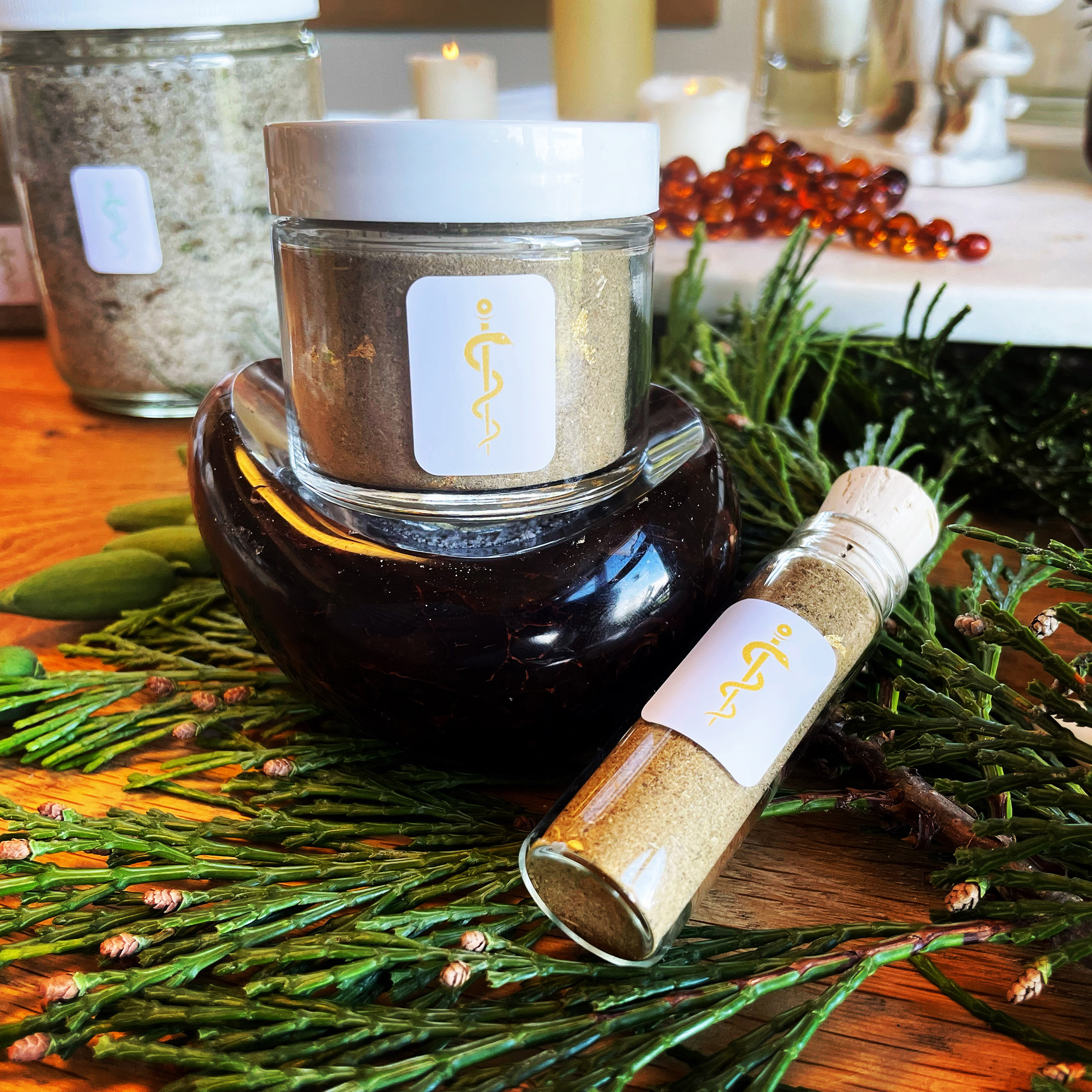Formulated to work beautifully as an Incense for offerings, smoke bathing the body, and interior spaces to banish low vibrations (+ the Dead) — particularly after someone has been unwell, and/ or as a magical Powder for dressing candles, sprinkling, and adding as an ingredient in spell work.