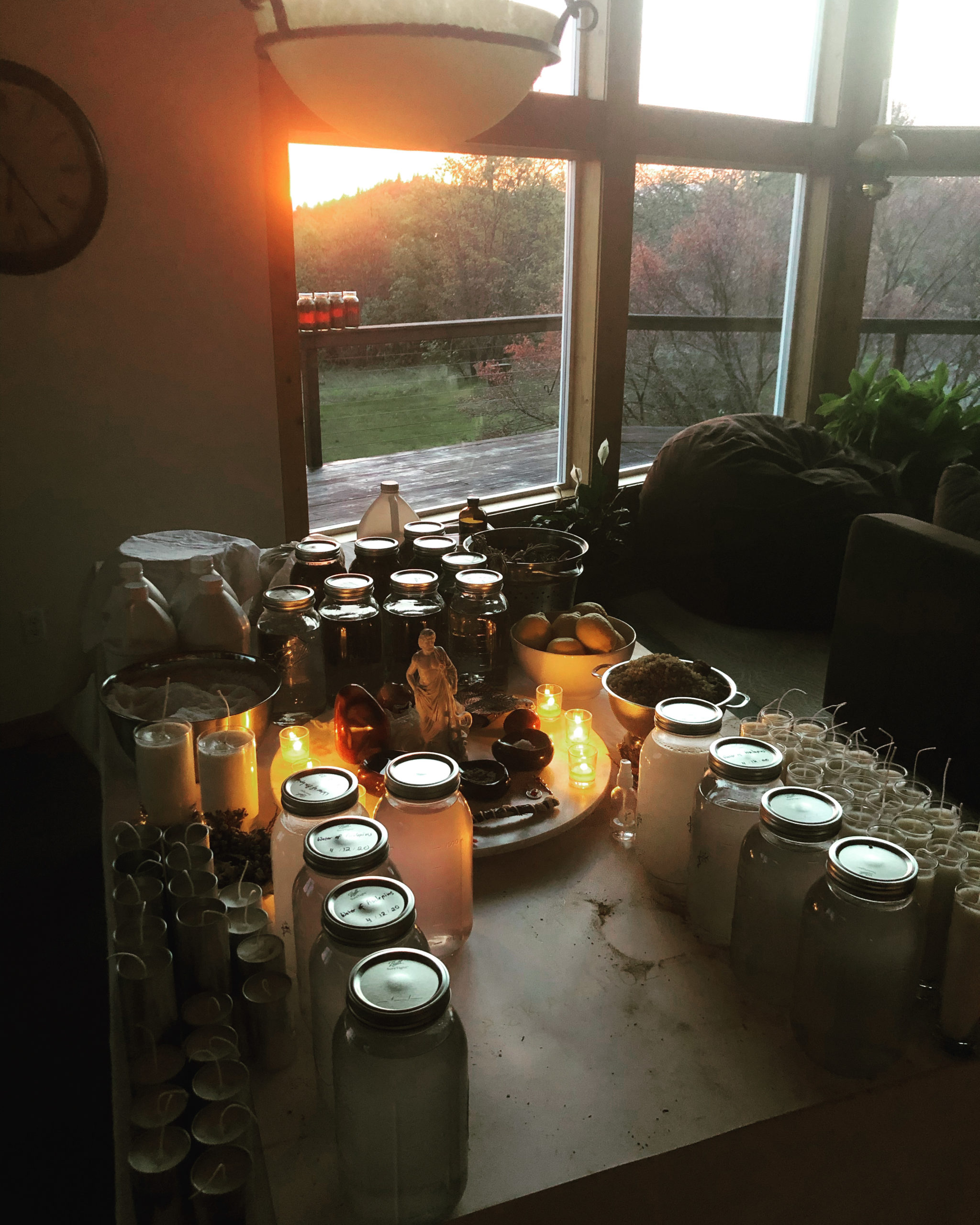 Organic calendula, St. John’s wort, goldenseal, yellowdock root, comfrey root, balm of gilead, carnelian, and 24k gold, fumigated with frankincense during the operation and left to greet the rays of the rising Sun on his day and hour the morning after. Ground to a fine powder under the auspices of Sol.