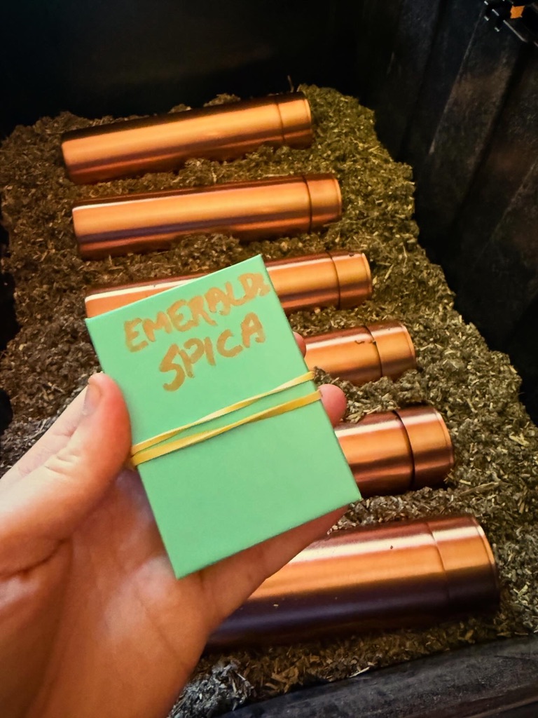 These include small jewelry boxes for Talismans made of matching wood fitted with pillows in green dupioni silk (a cross between corn silk and emerald!) filled with peridot and consecrated herbal mix, and slots custom fitted to properly store the items in your full set of Spica Materia (with extra room for items of your choosing!).