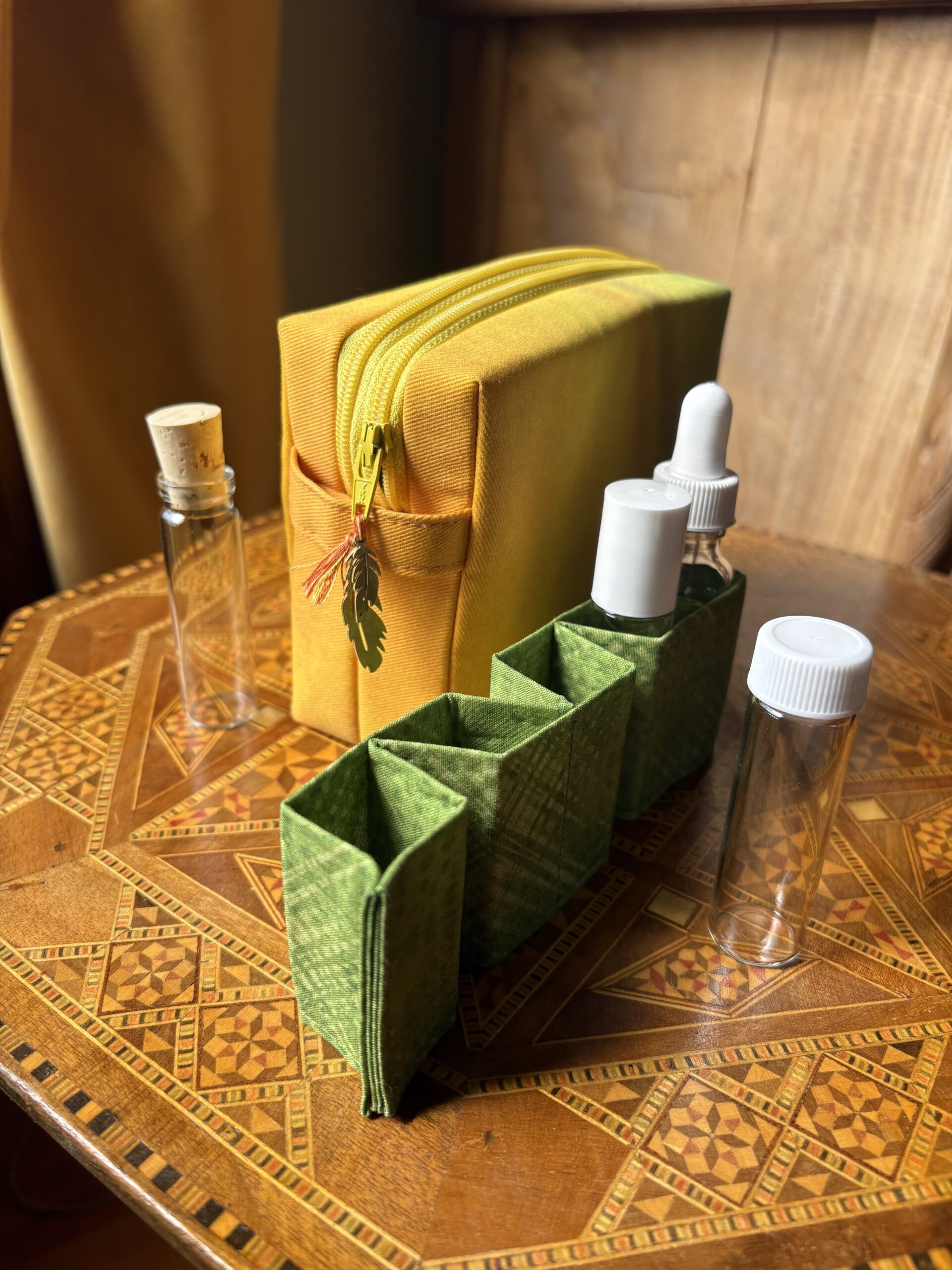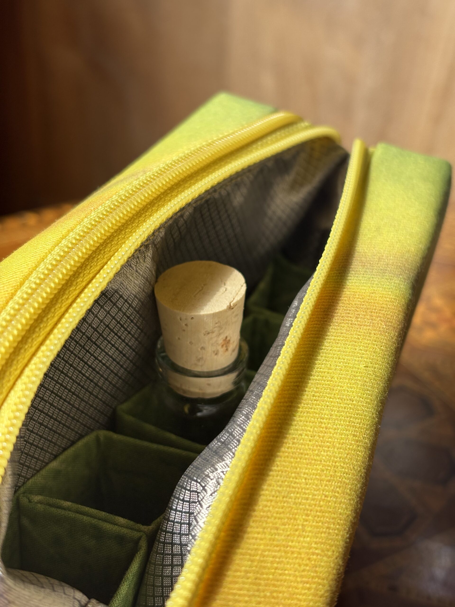 Altar cases, travel cozies, and water bottle sleeves will be made from a lightweight cotton twill custom printed in colors inspired by everything present on the day of the working – the altar, the candles, the quality of light.