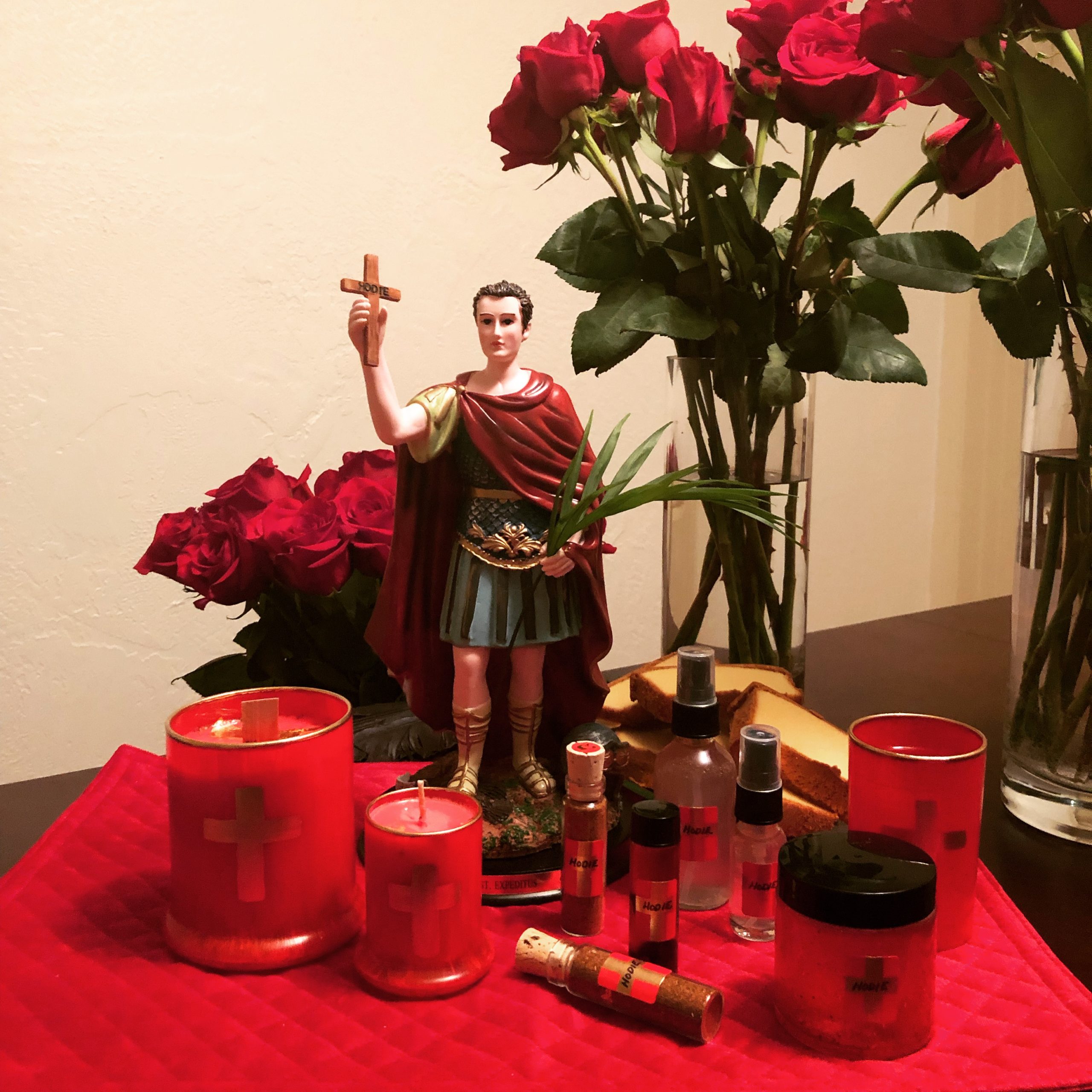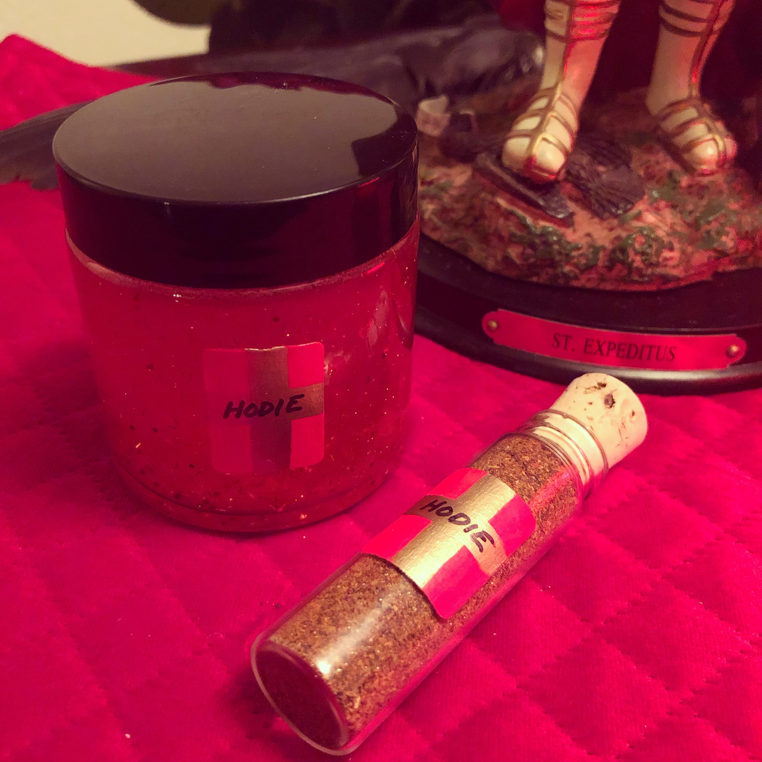 Optionally include a complete set of Black Phoenix Alchemy Lab’s 3 ritually created St. Expedite perfume oil blends.