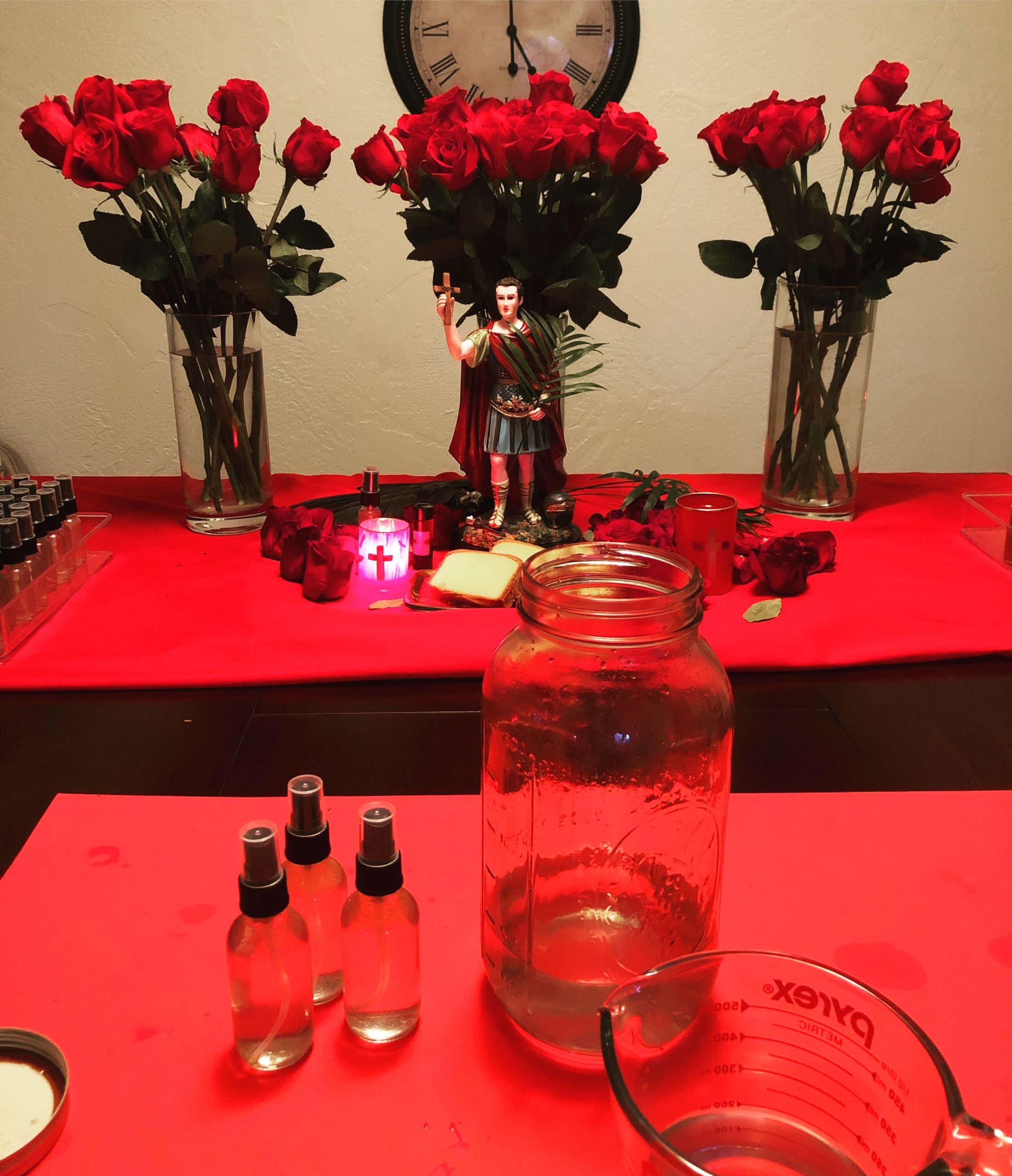 St. Expedite really came through for me this week, particularly today, and I wanted to thank him for his super speedy assistance. I sprayed it in our little nook before lighting a candle and chocolate offerings for St. Expedite. It smelled cinnamony pleasant, and energetically very apropos to thank St. Expedite. HODIE.