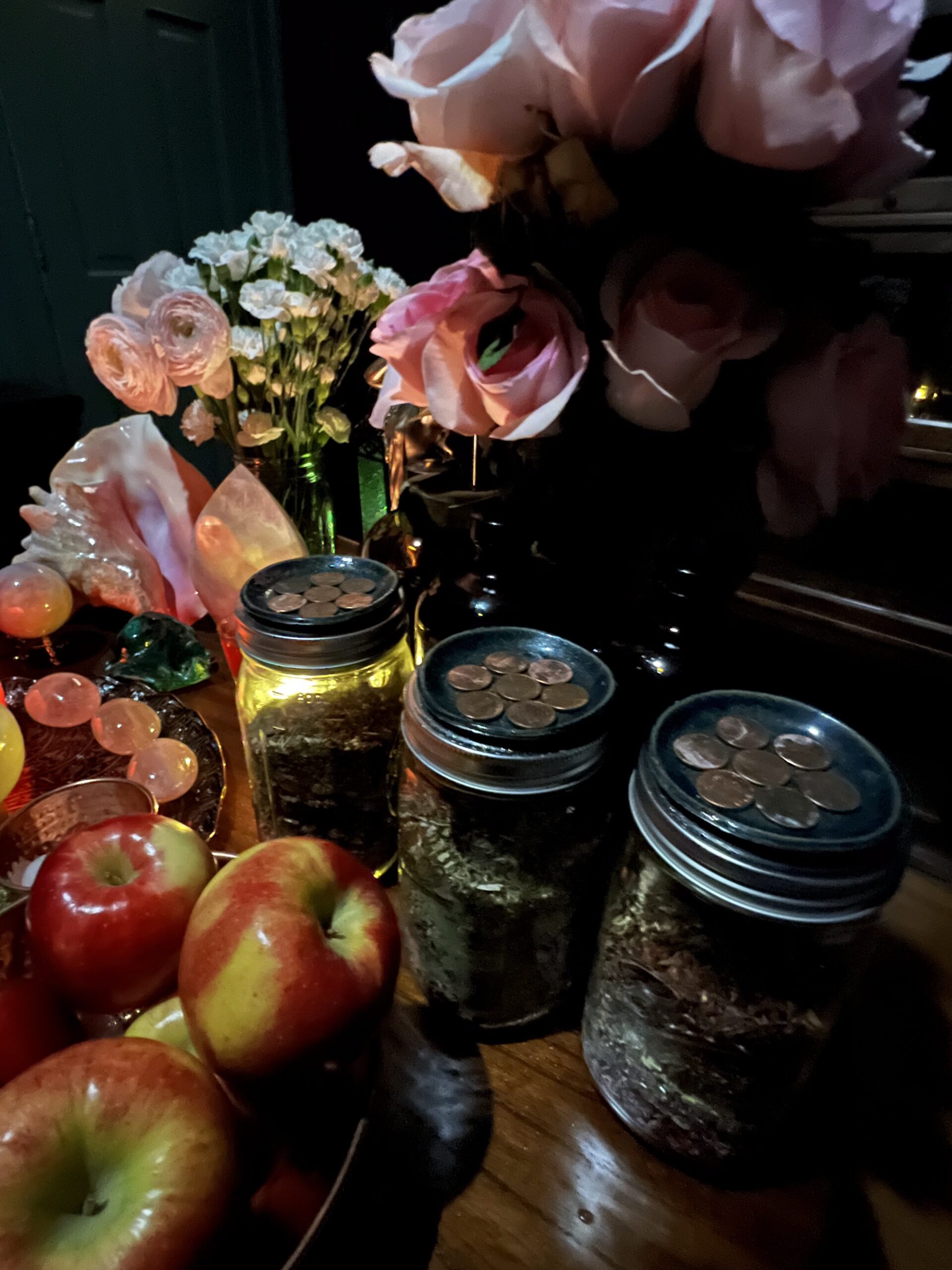 An oil of prosperity poured under the auspices of Venus in Taurus, this blend draws in abundance to nurture joy, ease, and pleasure. It attracts and multiplies the funds for creature comforts: soft sheets, warm blankets, exquisite meals, sparkling trinkets, and playful delights — the things that make life sweeter, softer, and brighter.