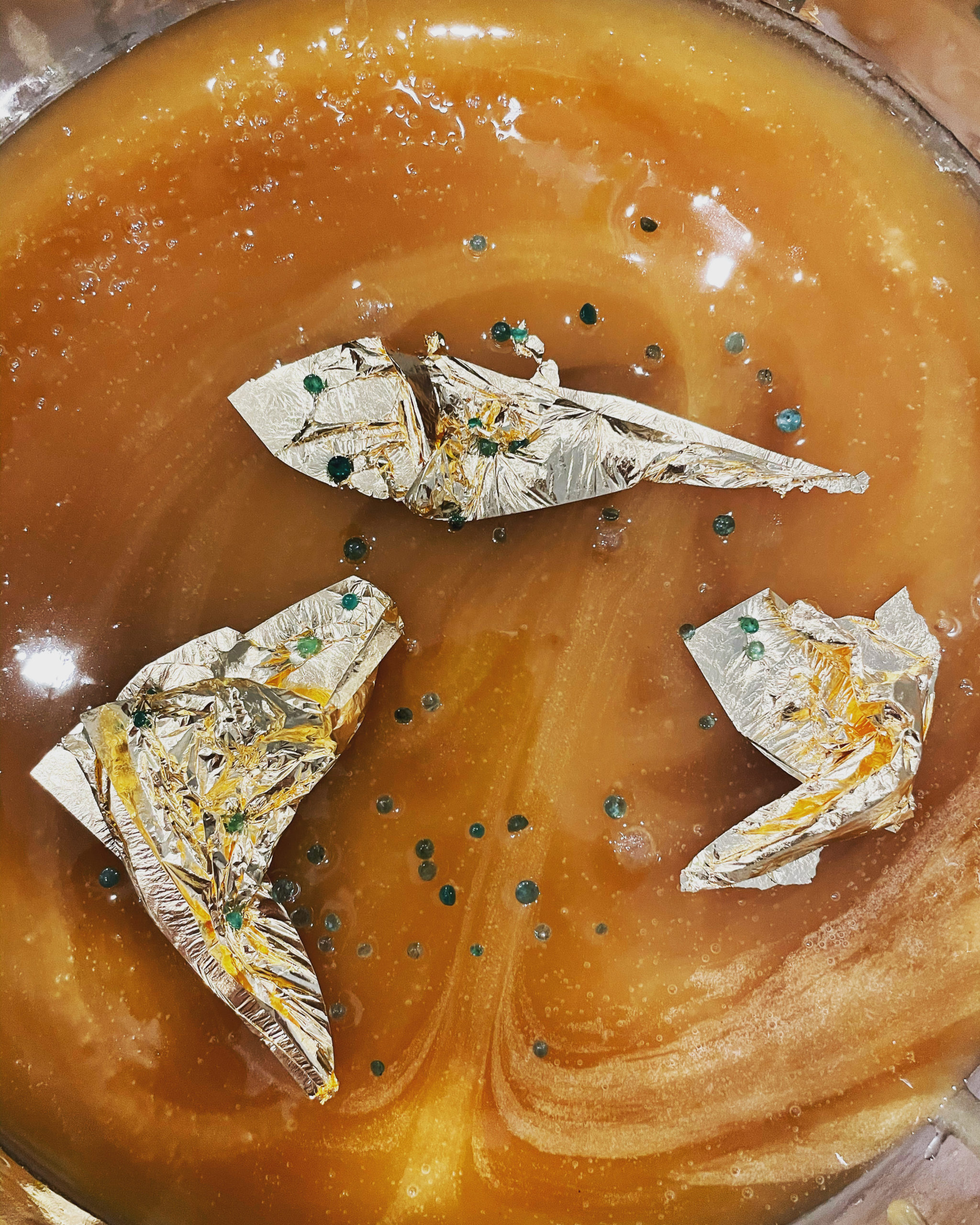 Honey infused with consecrated Venus’ Aerial Delight beautifying herbal blend + emeralds before being finely strained. Whipped with bean, 22kt rose gold, frankincense, and geranium.