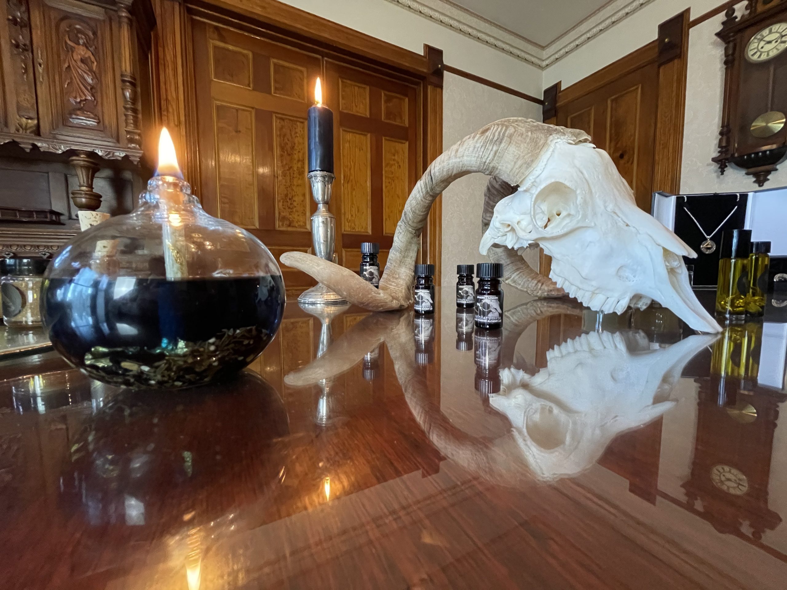 I was going to wait until the working was complete, and I will update then. This oil is something else. I finally gave up and used a pipette to move it to things that were anointed with it. Every time I attempted to pick the open bottle up and use it, I either dropped it or tipped it. Once I wasn’t touching it (I’m guessing my natal Mars in Capricorn gave it a kick back) I could move the product to candles, etc. Energy associated with working thus far is huge. Impressive. We’ll see how it does over the moon cycle that I’m working through is done. I’m hoping it head butts the target as hard as it did me just trying to set my operation up.