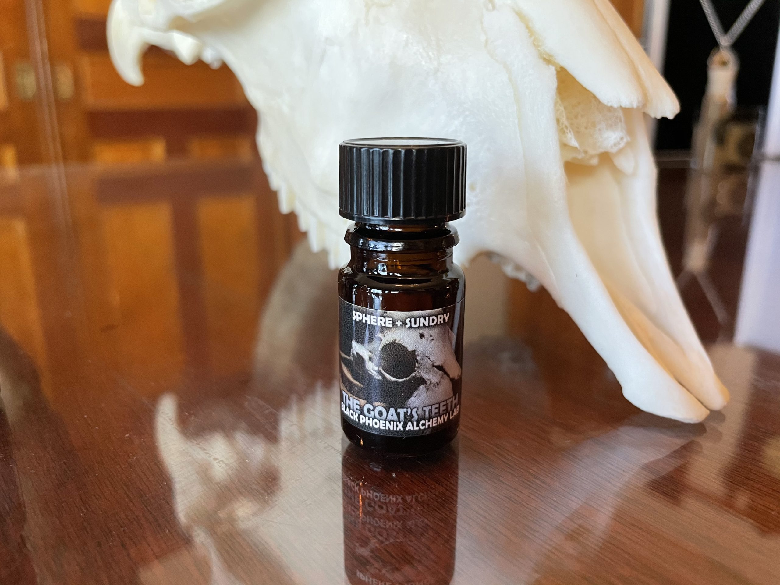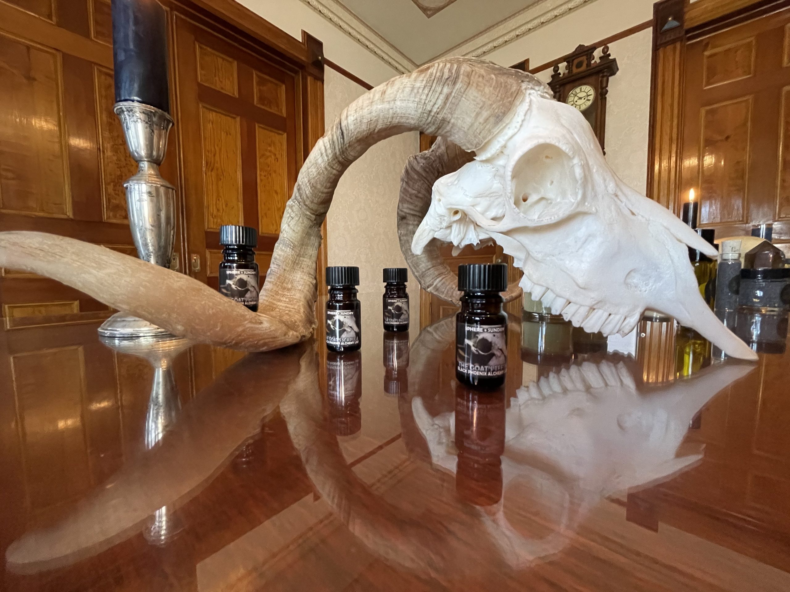 The long-standing GOAT of esoteric indie perfumery, Elizabeth Barrial of Black Phoenix Alchemy Lab and Twilight Alchemy Lab, created and charged a set of 4 talismanic perfumes for Saturn in Capricorn during Sphere + Sundry’s election, inspired by various aspects of goat anatomy —