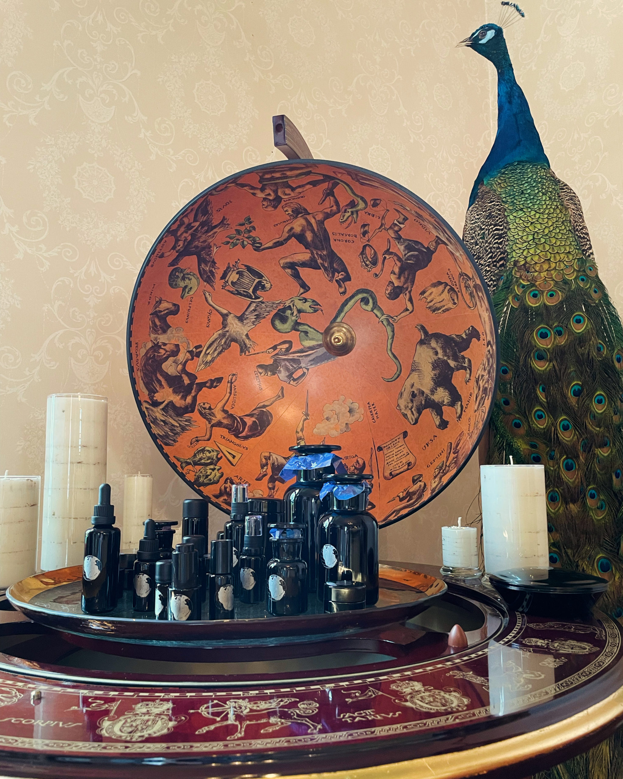 Thema Mundi will be bottled to order exclusively by its Creatrix, in Miron violet glass akin to its altar cloth, preserving its contents for years to come.