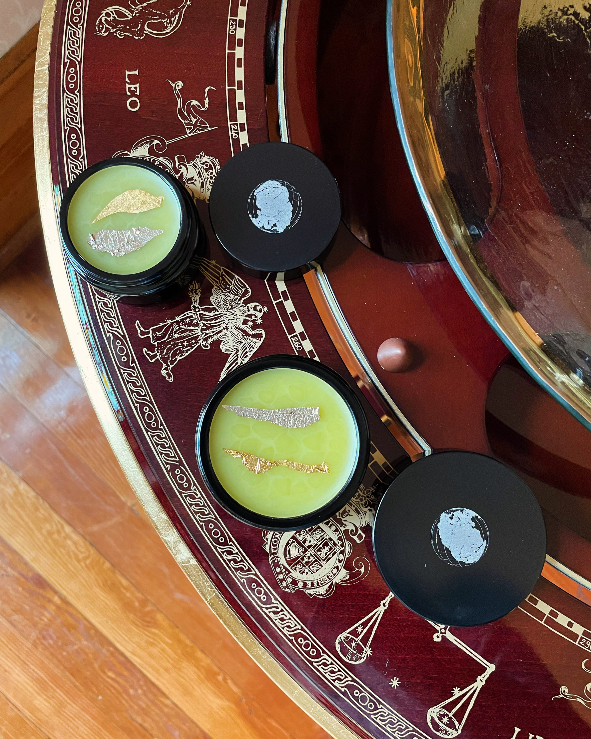 This salve. Wow. First of all, even the smaller size feels hefty and generous--and the crowning of silver and gold on top is truly lovely. It's interesting to compare and contrast the way this feels with the anointing oil....you can absolutely feel a difference in the vibe. There is a melting, somatic sensation with this salve that is truly of a class of its own. I applied a small dab to my chest and heart center and it was a remarkable feeling of Wholeness--of Completeness--that swept over me. I am excited to work with it more.