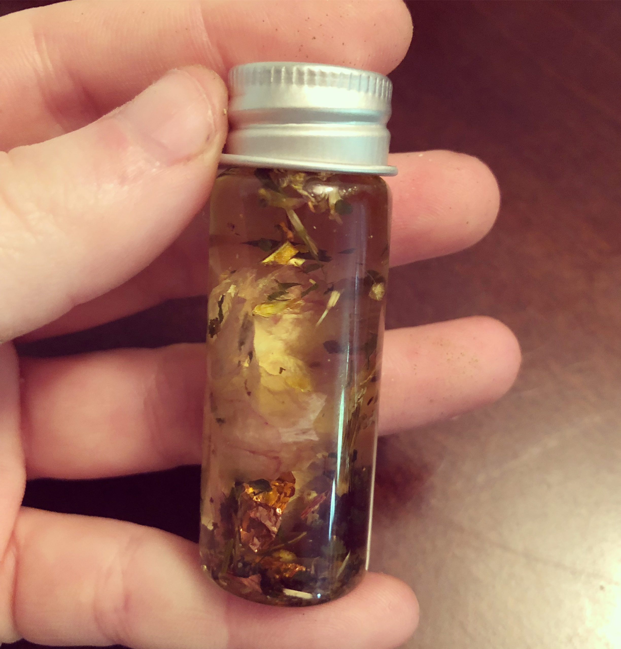 I was visiting an elderly relative who experiences a lot of grief and depression. A short while after I anointed her with the oil as a beauty treatment I found her sitting outside on her porch, soaking up the sun, and we had a very connected chat. She has lived in her house for decades and she said it was the first time she had enjoyed the sun on the porch in that way. Probably an exaggeration, but it felt like a turning point in her mood during my visit.