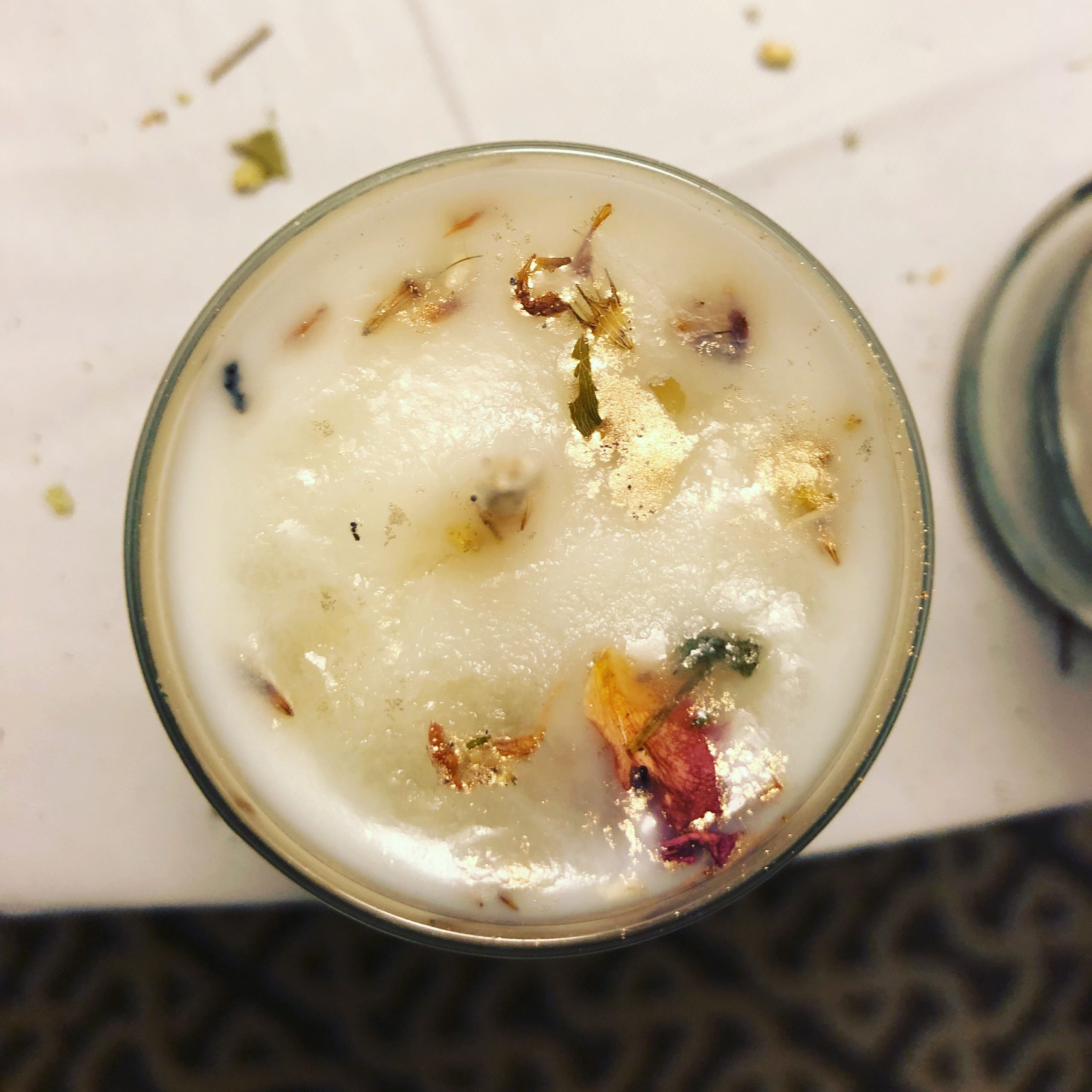 Non-GMO soy, ritually poured over consecrated organic herbal mix and gold magnetic sand during one of the best Venus in Taurus elections 2019 had to offer. Crowned during Venus’ day and hour with a fair trade emerald, genuine copper leaf, and royal jelly drizzle, a bee secretion used exclusively to feed the Queen Bee and her growing larvae.