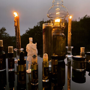 Each candle is in a large 12 oz jar that, depending on burning habits, can provide 45+ hours of burn time. They feature a glass cap with Mars’ glyph, Agrippa’s seal of character, and the kamea or magic square, all inscribed during the operation. As their burning will often be accompanied by that of incense, they are unscented.