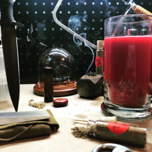 Burn to fuel Martial energies on Altars or create atmosphere in a “war room”. Use for candle magic, to light sigils and petitions aflame, to seal packets and letters with enchanted wax, during Martial prayers and propitiations, and for flame-gazing meditations.