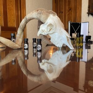 Each bottle contains a piece of clear quartz that has been washed in frankincense hydrosol on the day and hour of Sol, and the whole of the perfume and its contents passed through the smoke of frankincense tears and Greek monastic lemon flower incense.