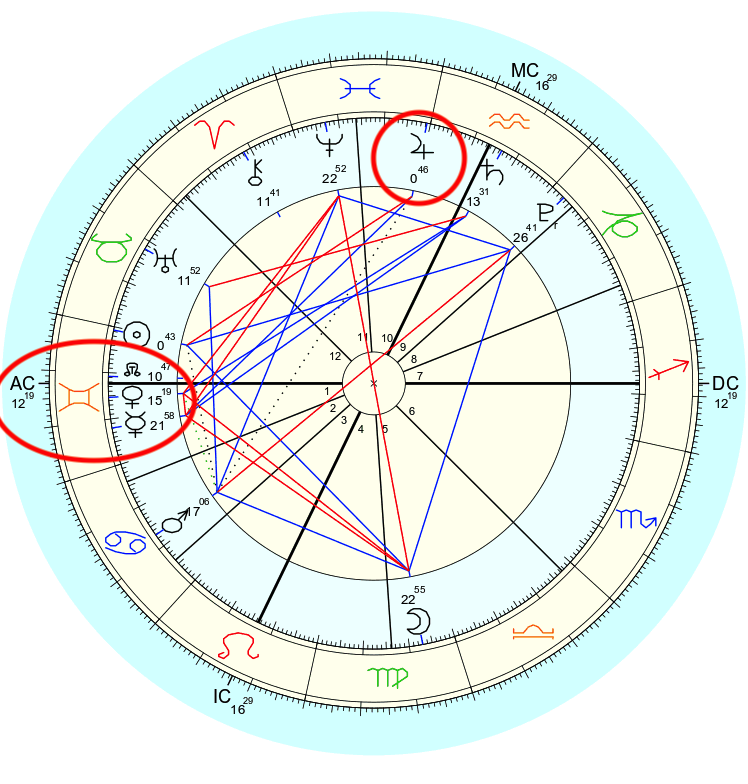 The skies at this time had Mercury and Venus in the 1st House in Gemini, and Jupiter in Pisces in the 10th, thus qualifying for a tropical Saraswati yoga. Furthermore, Jupiter was in its own sign, Pisces, and Mercury was in Gemini, putting both in a position of great strength. Additionally, with the Sun in Gemini and the Moon in Virgo, the Saraswati yoga recurs from the perspective of both the Sun and Moon, magnifying the power of the configuration.
