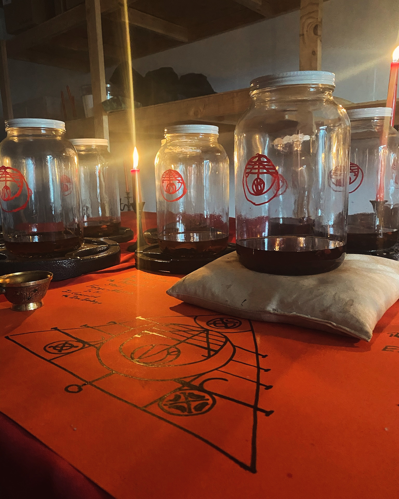 Note photos were taken before the jars were filled to the brim with herbs and good quality rum. The Jow was then left to incubate in silence and solitude for more than one full year before being decanted for public release.