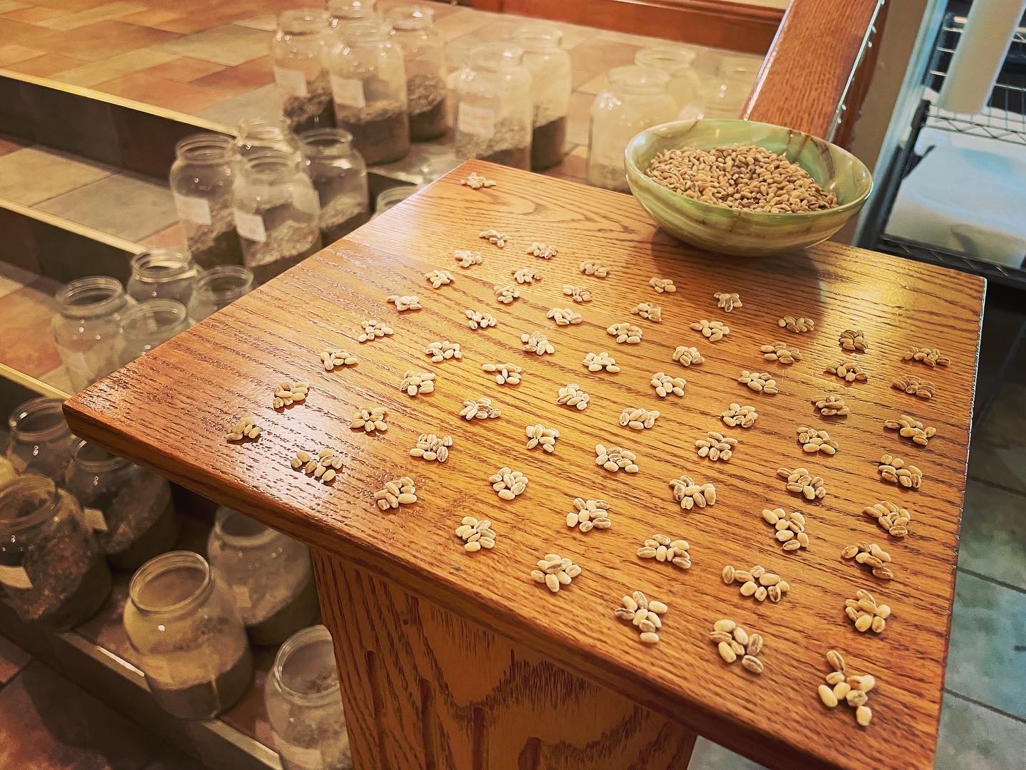 Lucky hand root and abre camino. Barley, wheat, and nutritional yeast. Ground with frankincense, agate, peridot, and high-grade opal.